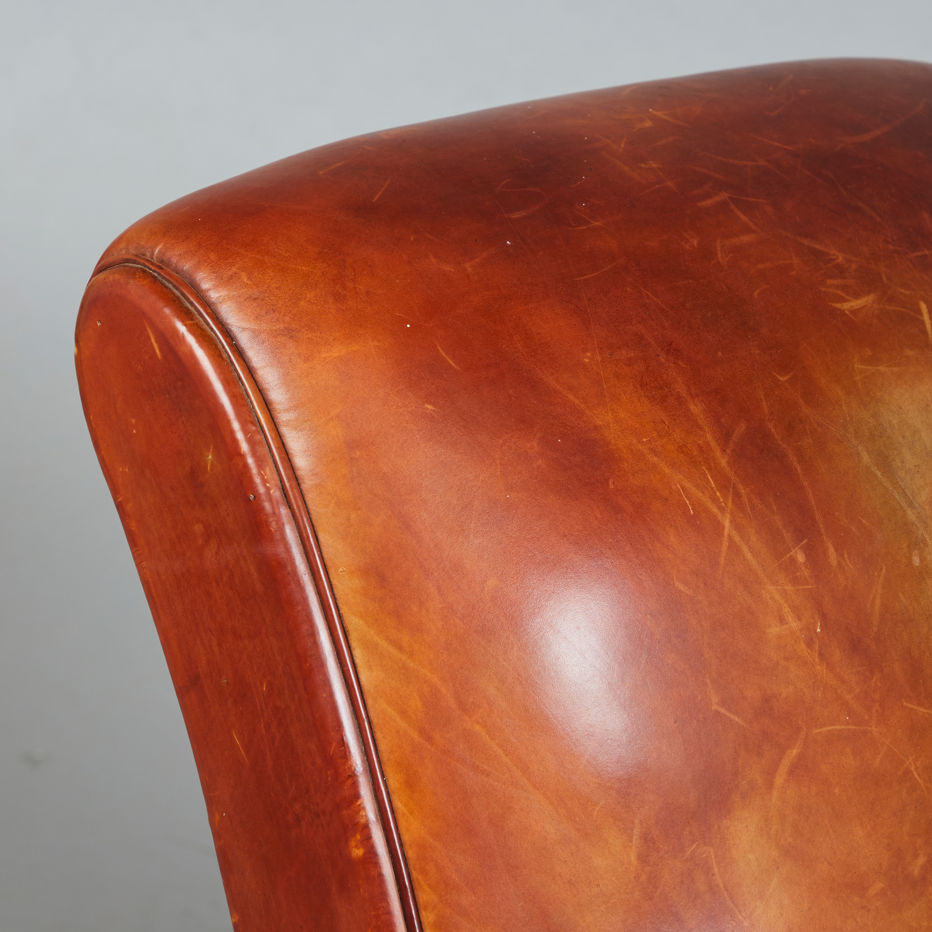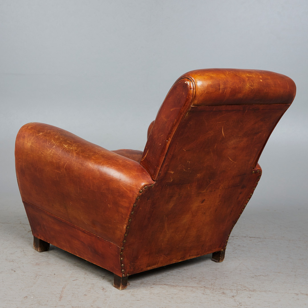 3170666. Lænestol, læder, træ.