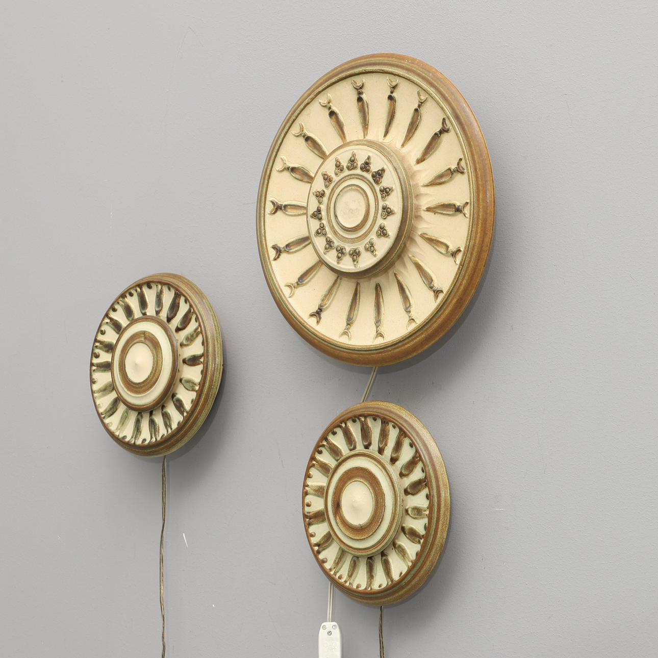 3170799. JETTE HELLERØE, 3 væglamper, Axella keramik. Danmark.