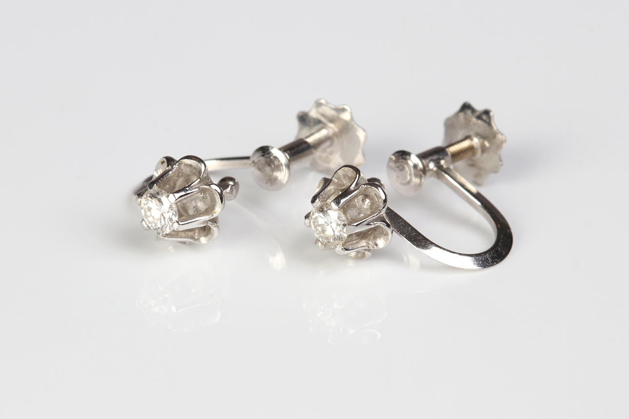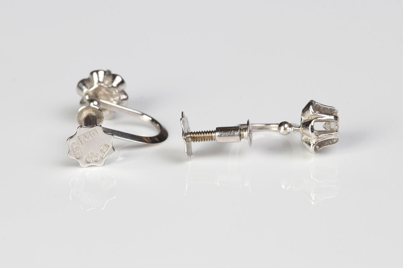 Hver med en brillantslebet diamant, i alt ca. 0,24 ct. Alton Guldvaru, Falköping 1975. Skruefastgørelser. En sag er inkluderet.