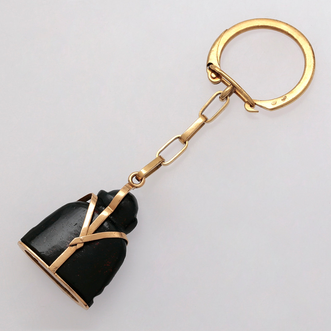 3179097. Guld nøglering med heliotrope Buddha.