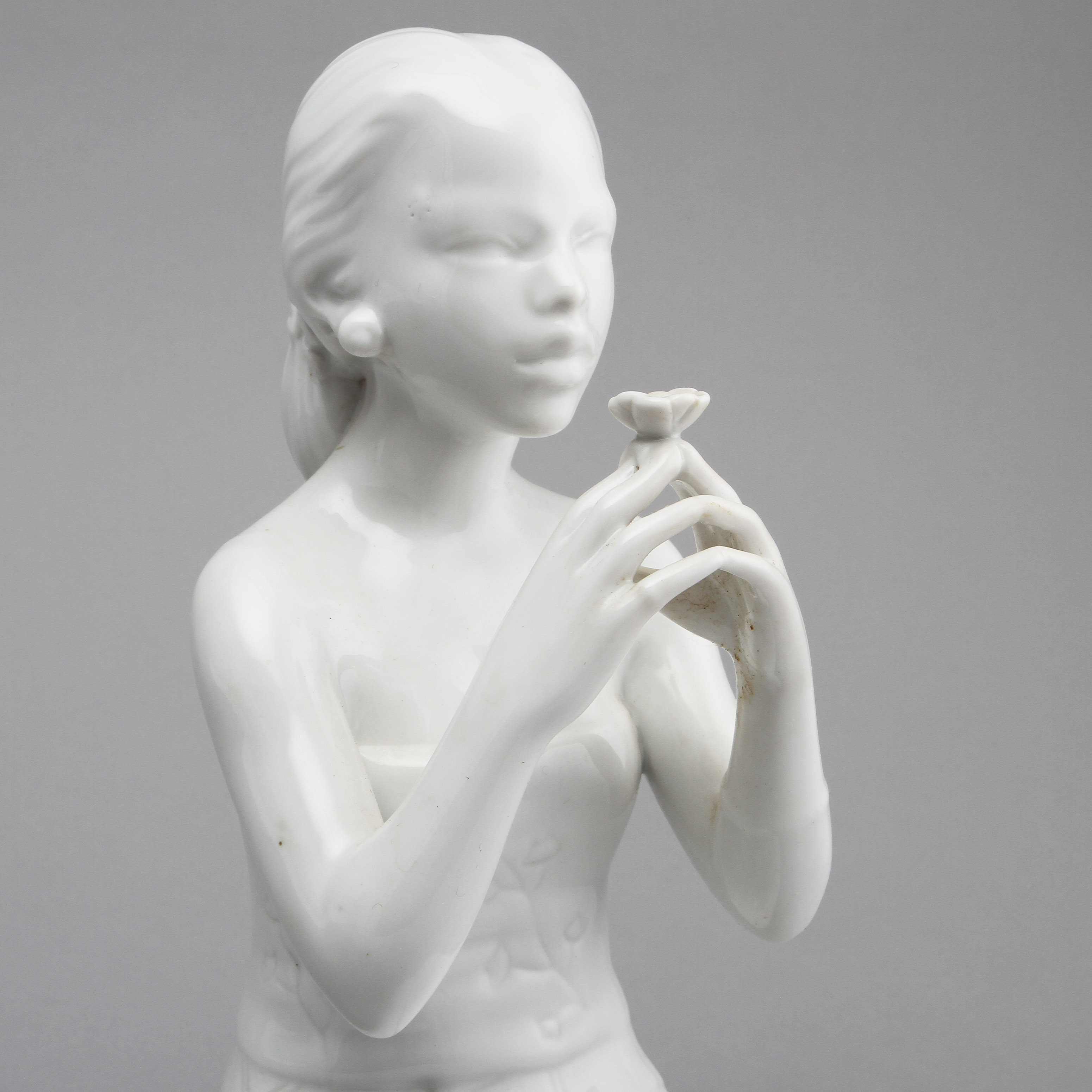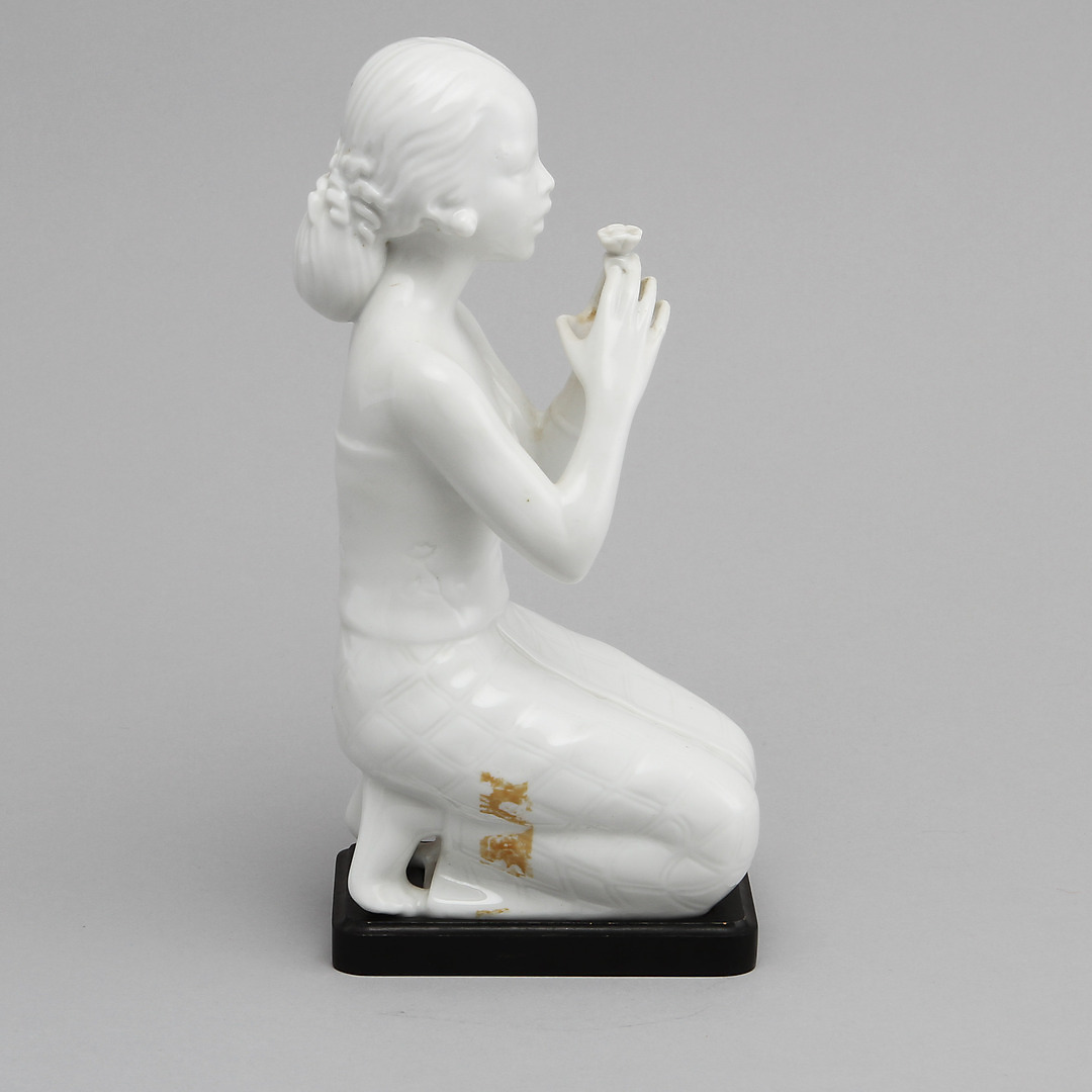 318149. FIGUR, Pige med blomst, Rörstrand.