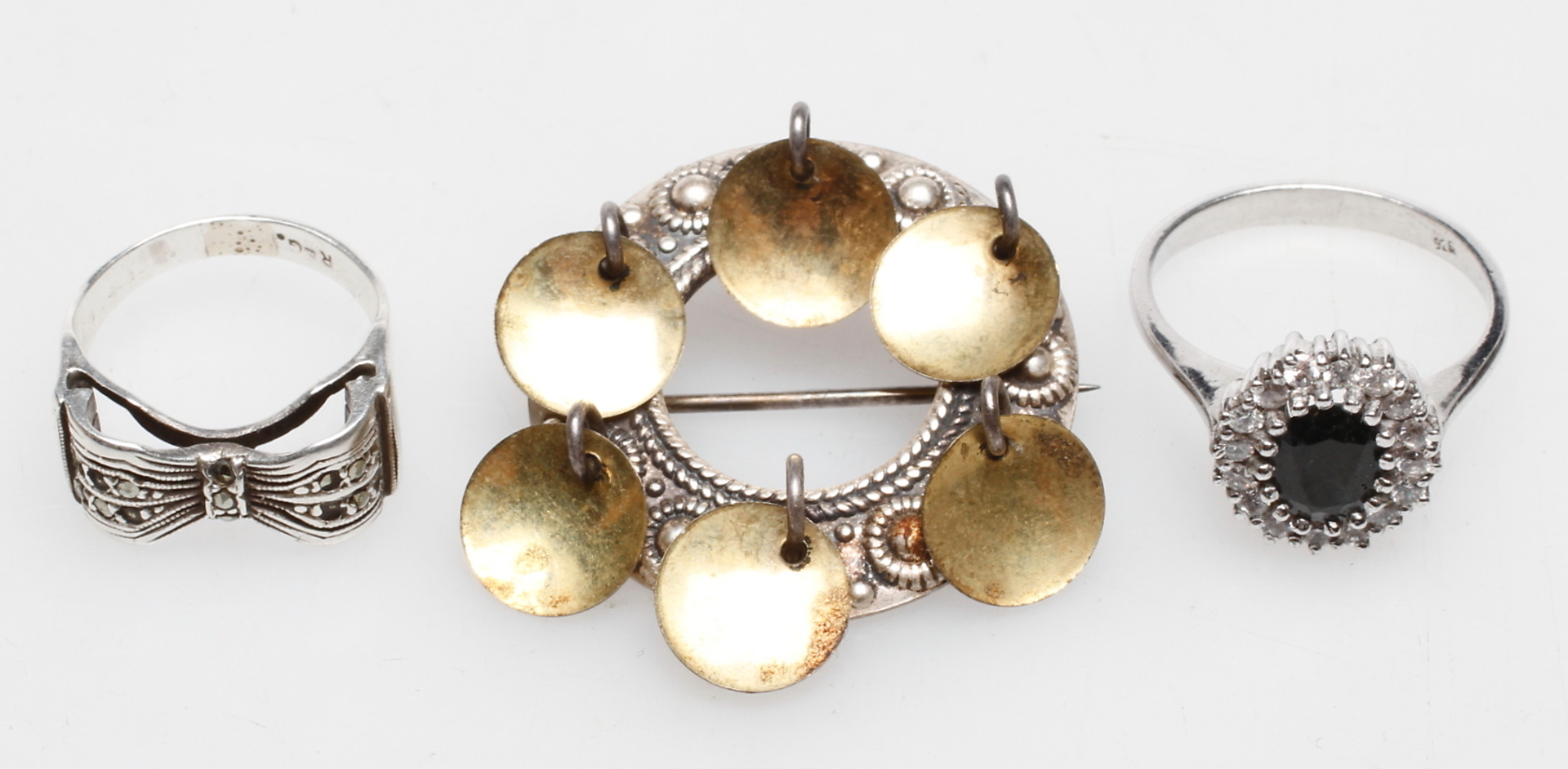 318419. BROCHE og RINGE, 3 dele, sølv, 1900-tallet.