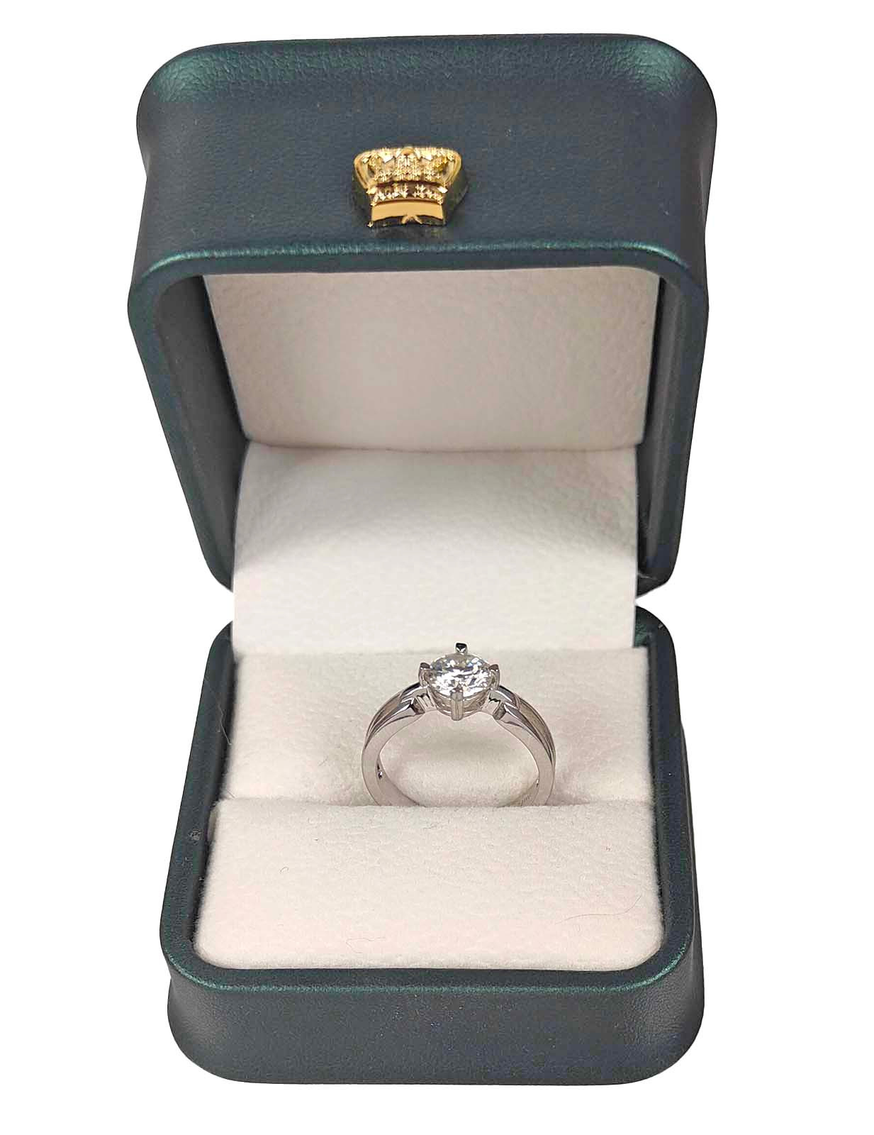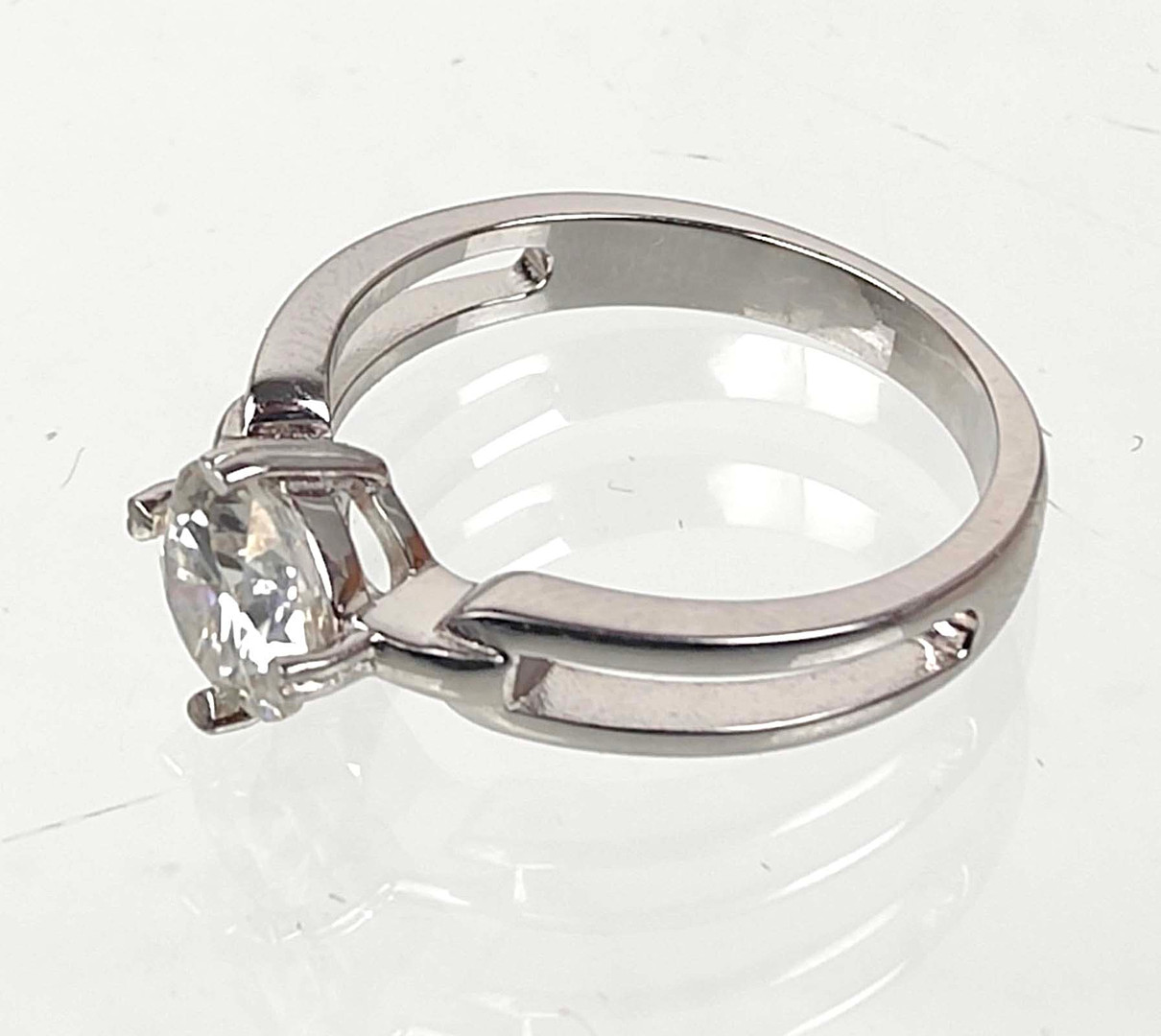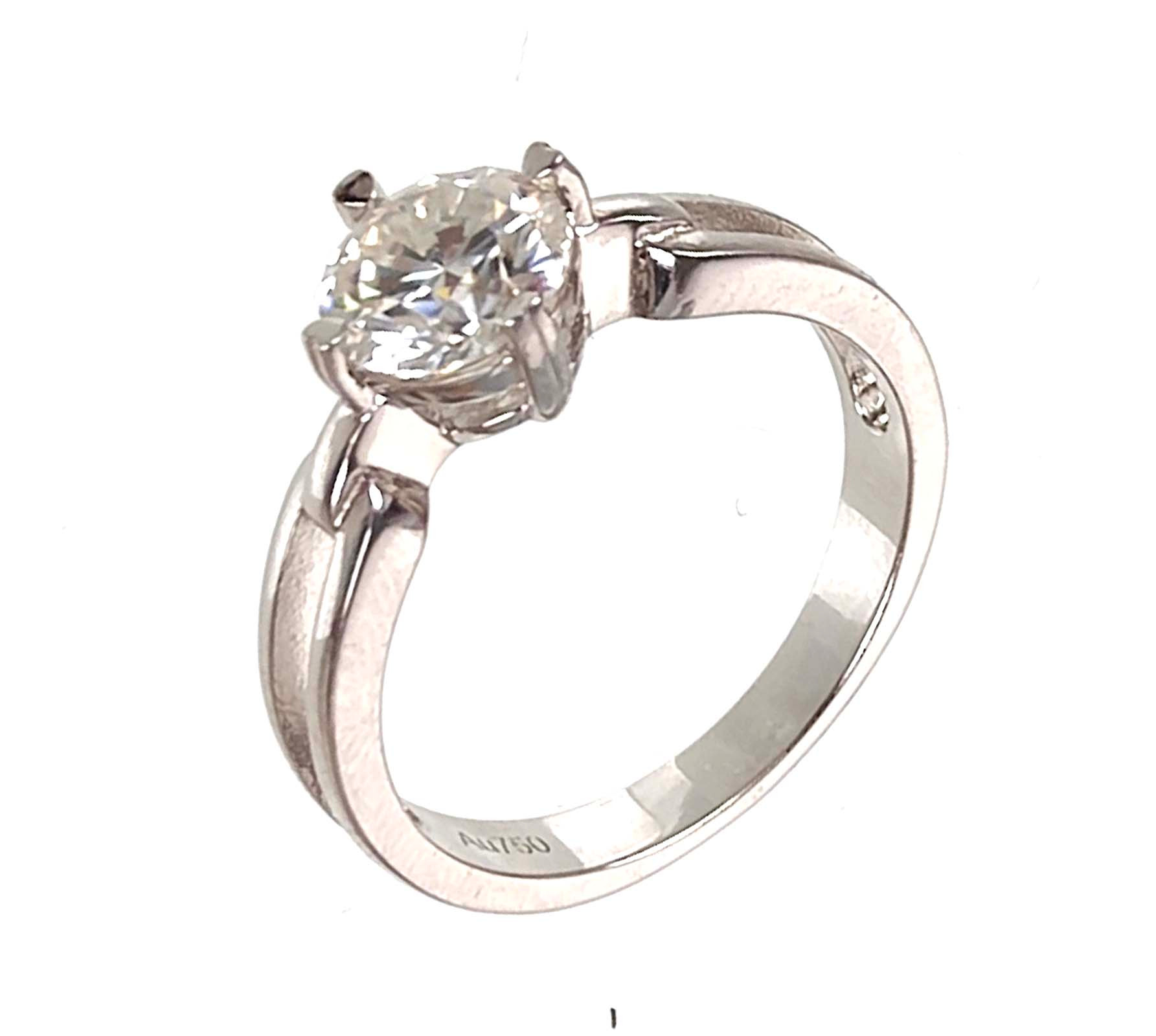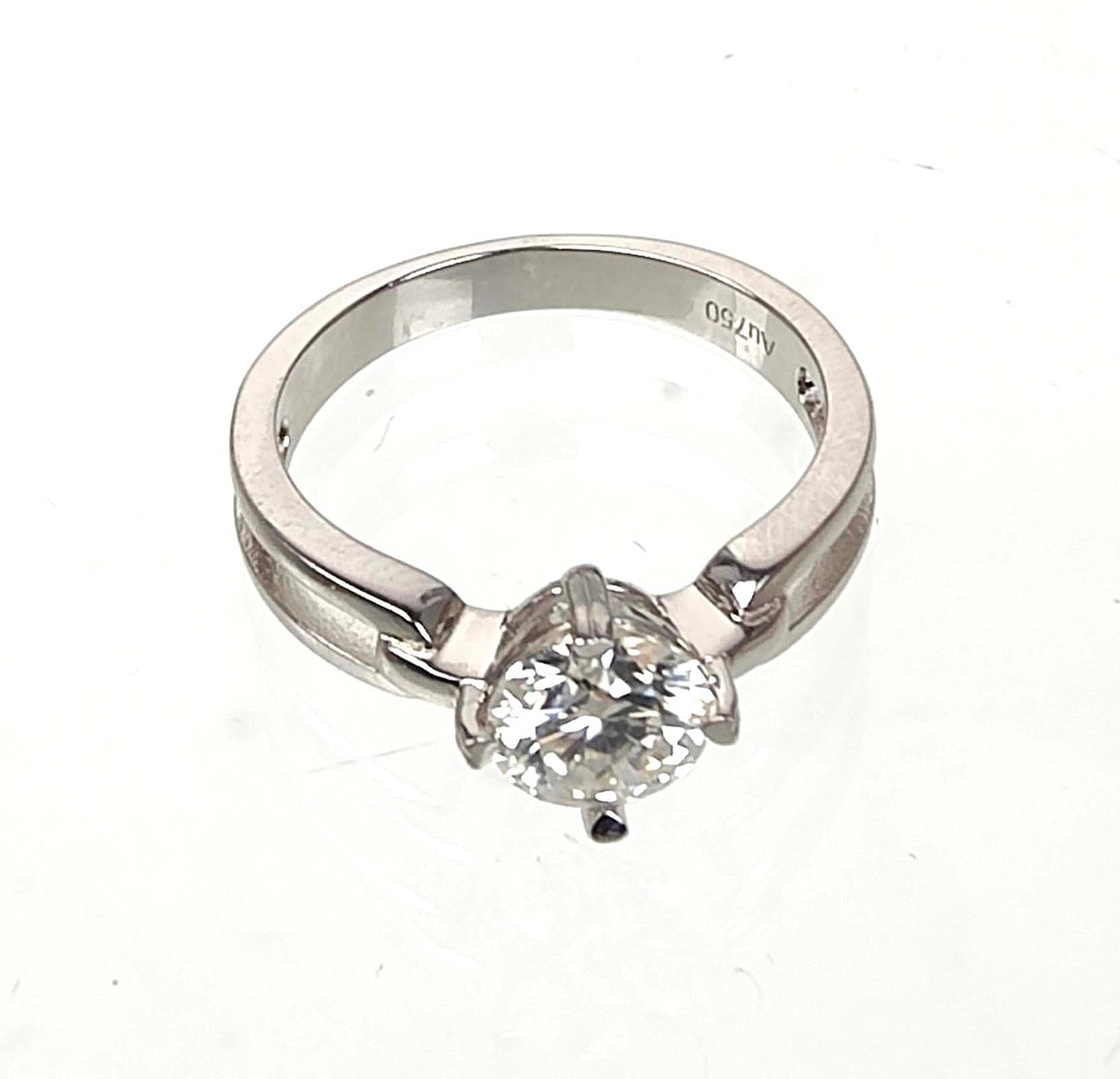 3187995. K18 HVIDGULD RING med syntetisk diamant.