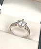 Overdådig 18 karat hvidguld moissanitring med syntetisk diamant på ca. 1 karat.