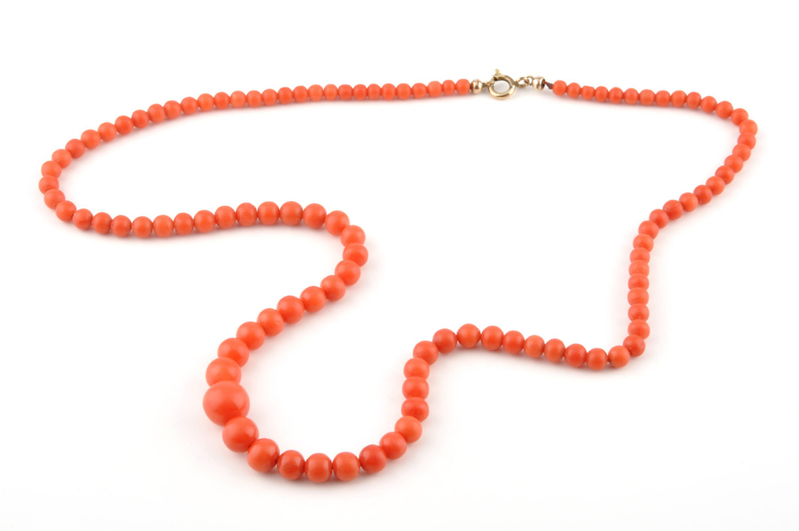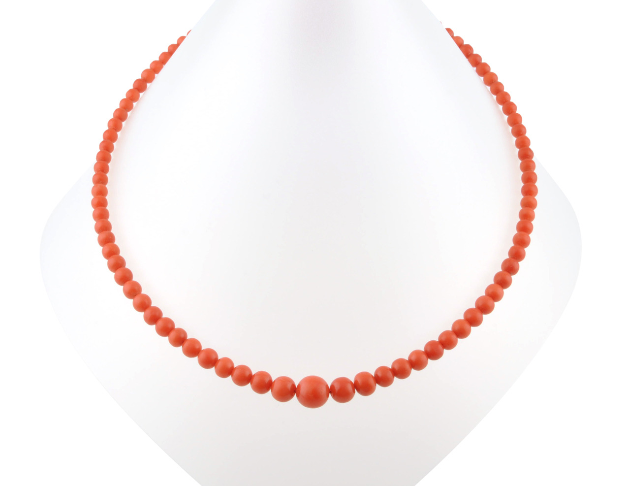 319075. KORALLENKETTE. Lakserøde koralperler.