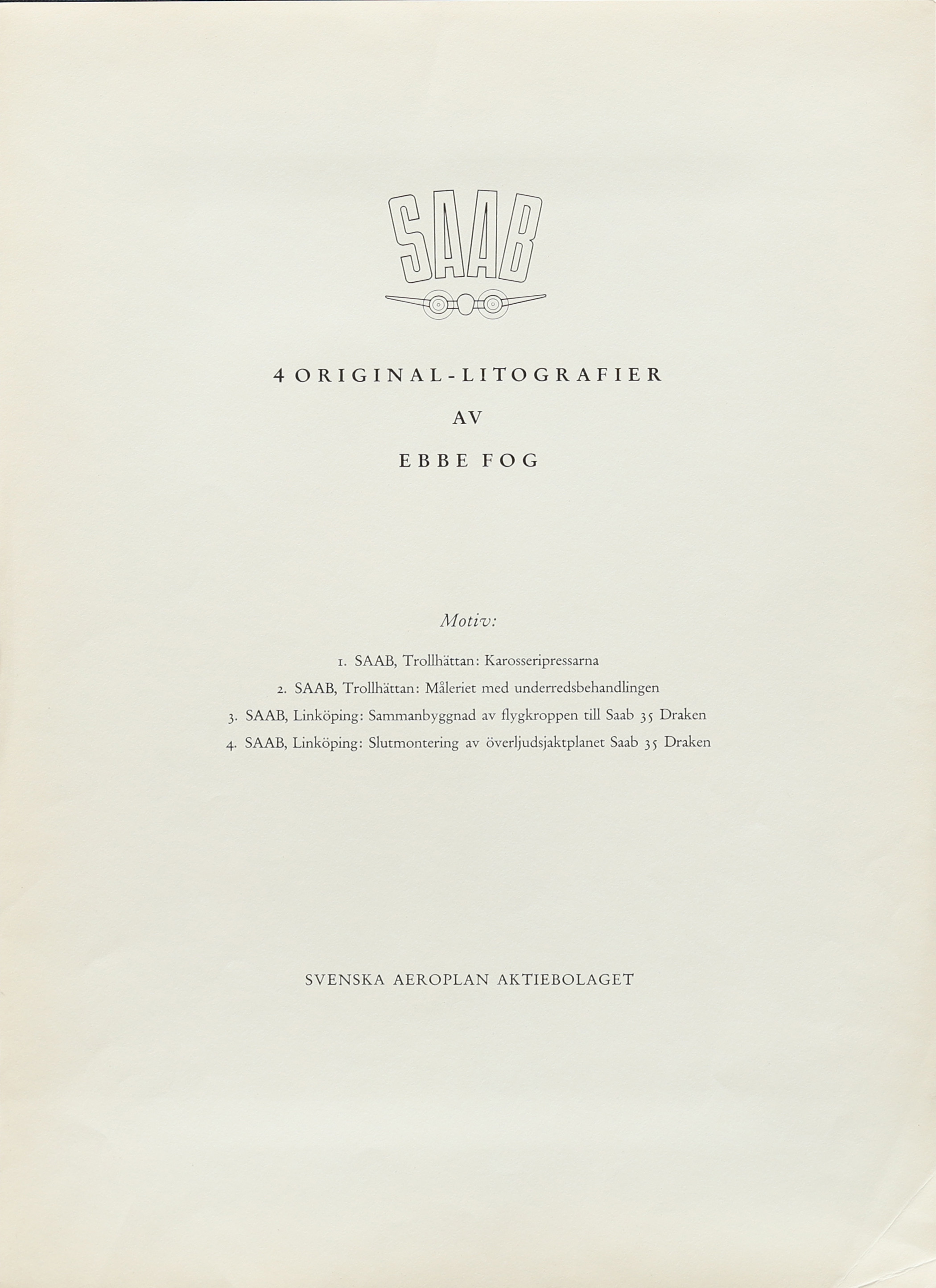 3191007. EBBE FOG. Mappe, 4 litografier, SAAB.