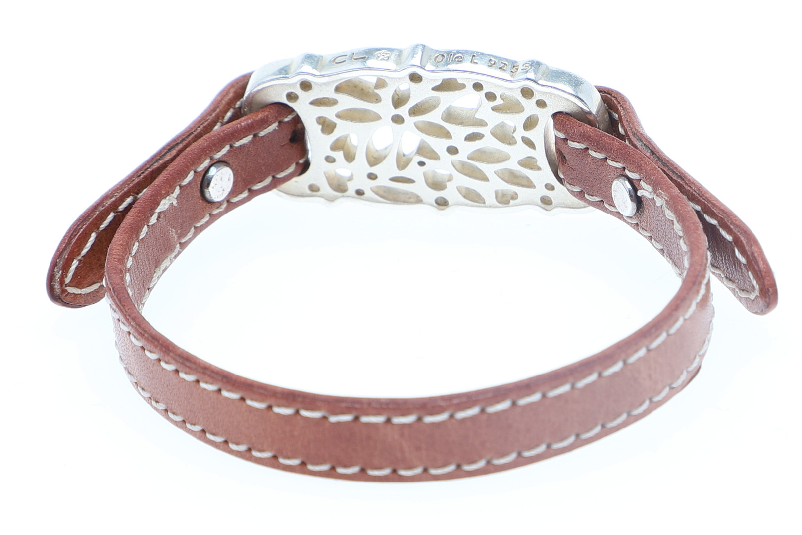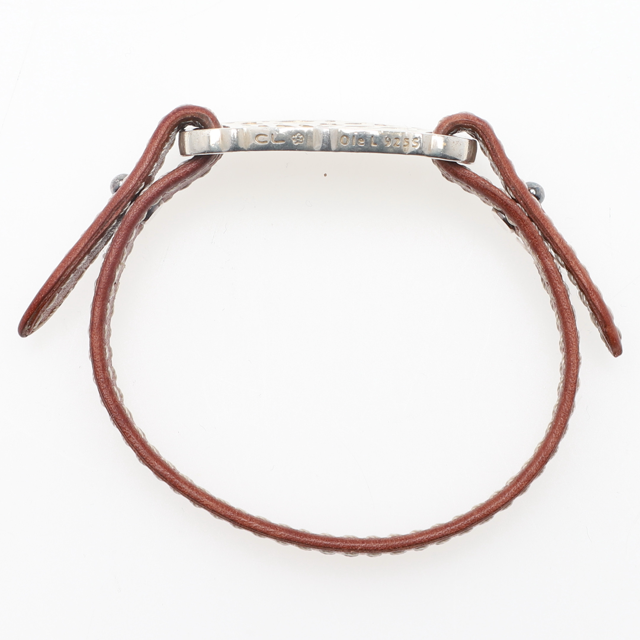 3191139. OLE LYNGGAARD. armbånd, læder & sterlingsølv, „Lace“, Danmark.