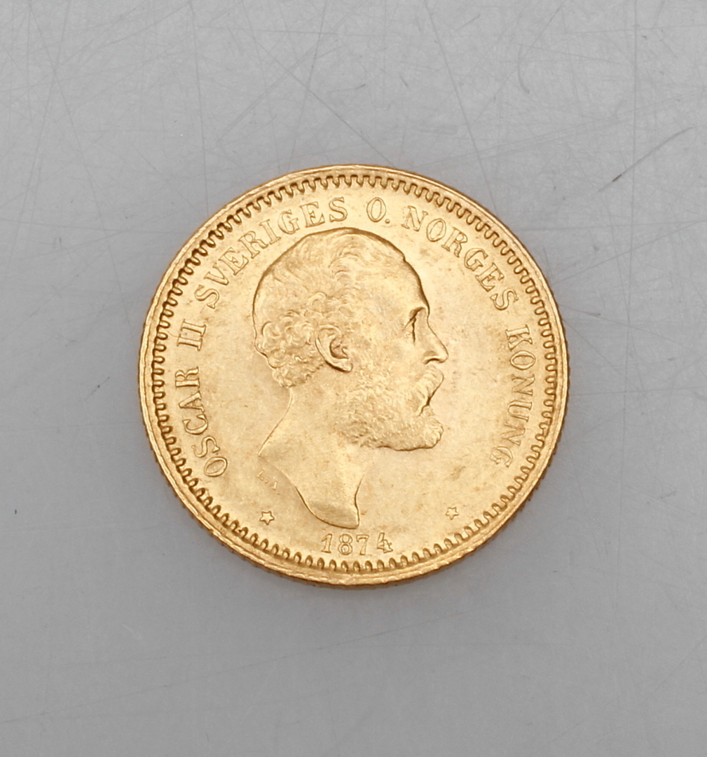 319362. MØNT, guld, 10 SEK, Oskar II, 1874.