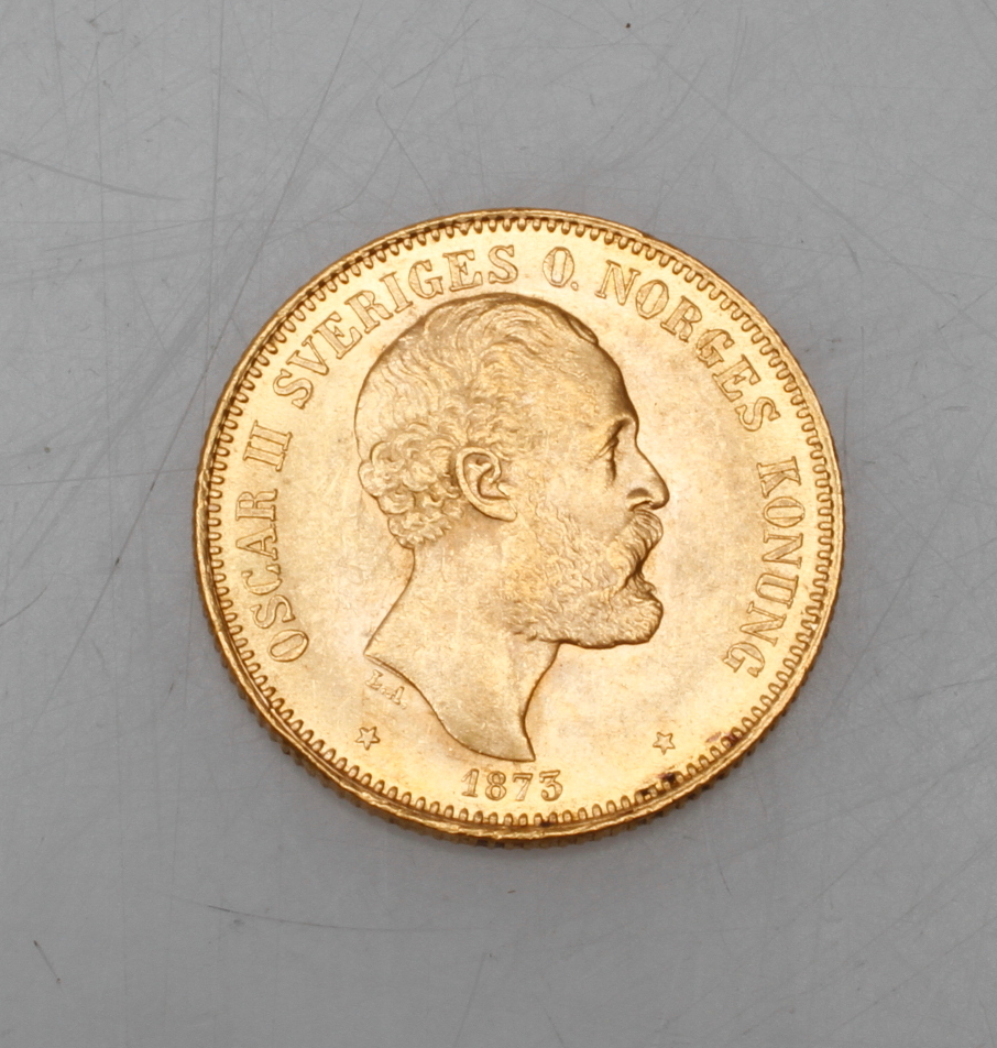 319388. MØNT, guld, 20 SEK, Oskar II, 1873.