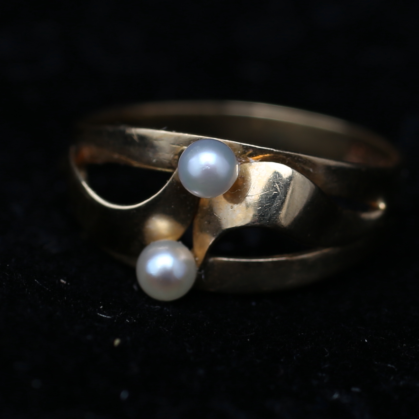 319466. RING og ØRERINGE, 18 karat guld med perler, 3,2 gram.