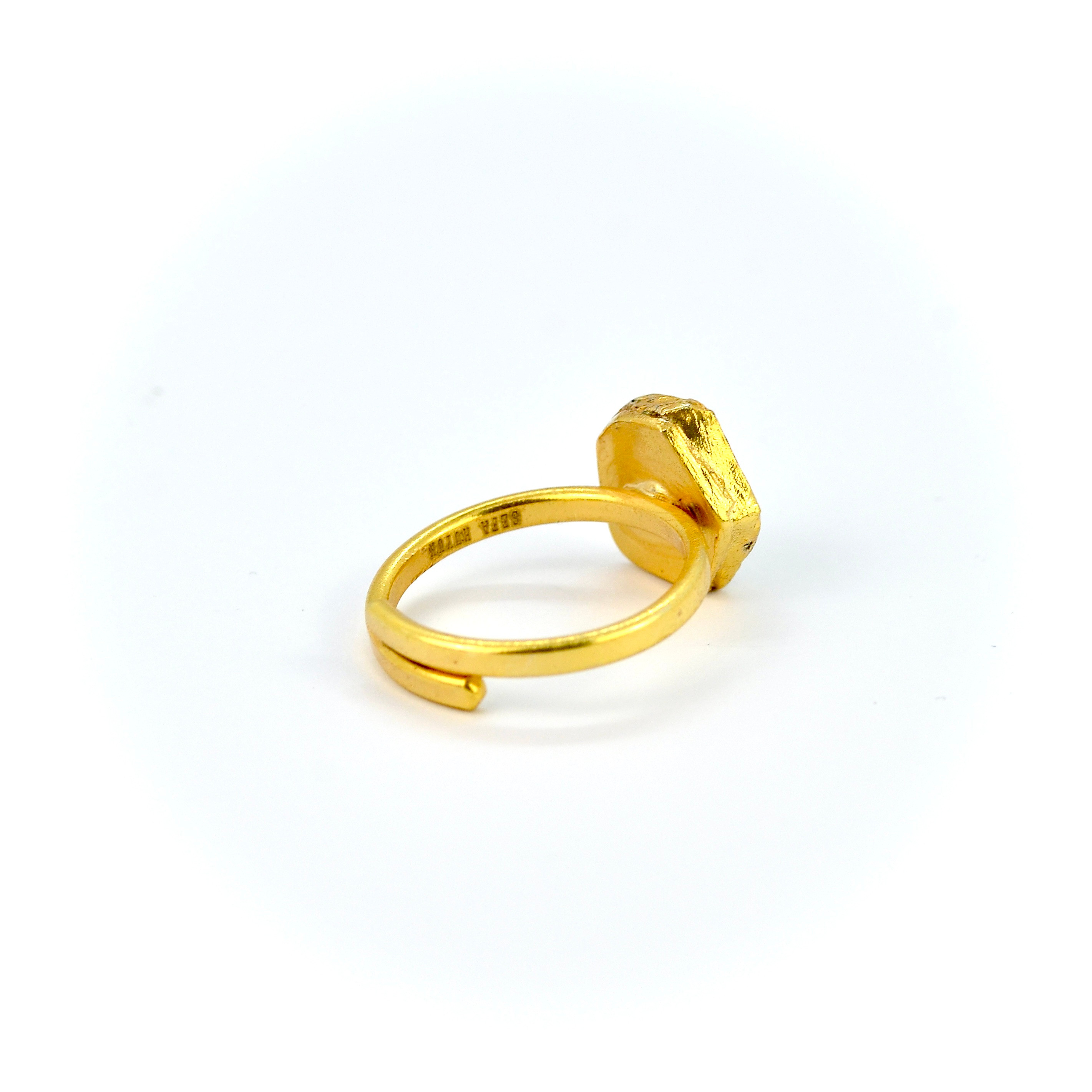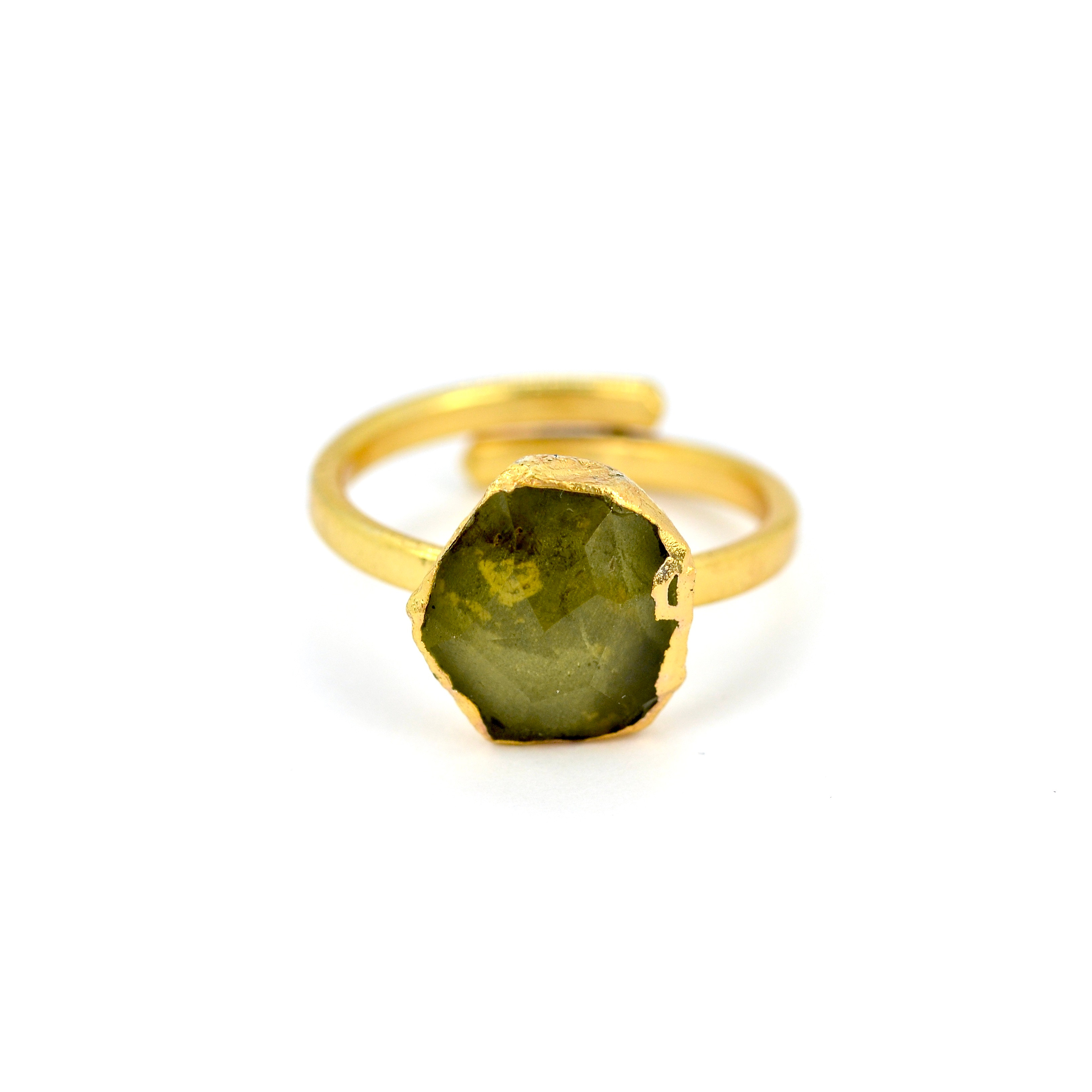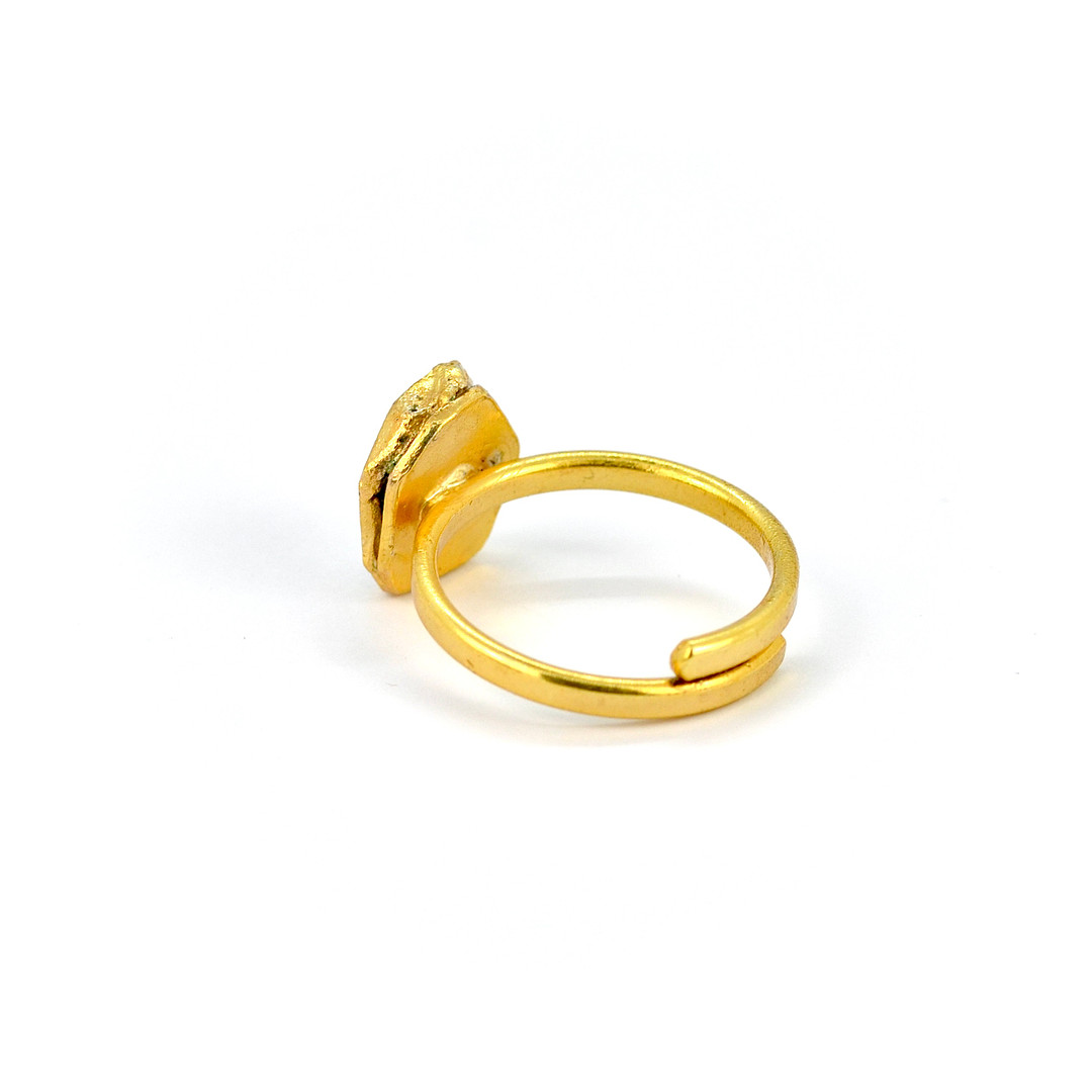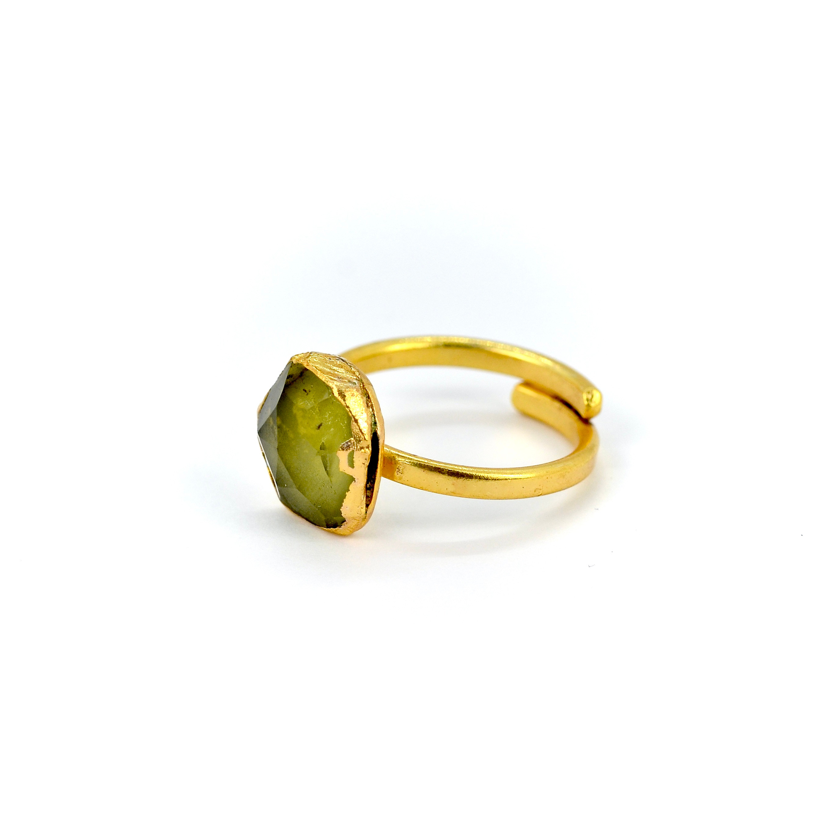 3194973. GUL METALRING SÆT MED RÅ STEN.