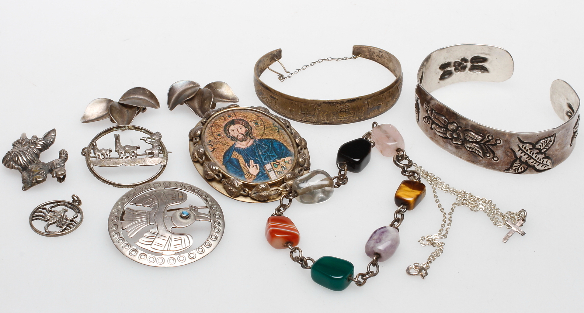 319785. SMYKKER, sølv, 10 stk., 19.-20. århundrede.
