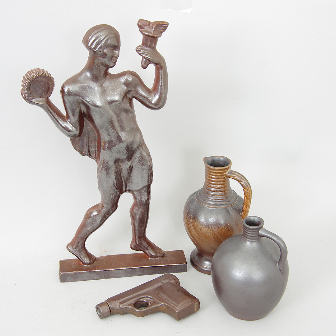 320086. VÆGRELIEF, PLUNTA OG 2 KRUS, keramik, Höganäs.