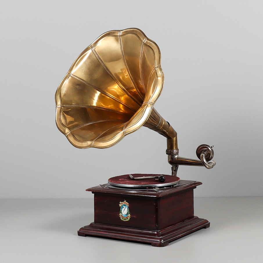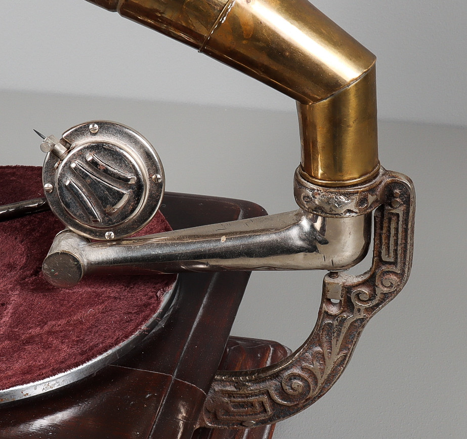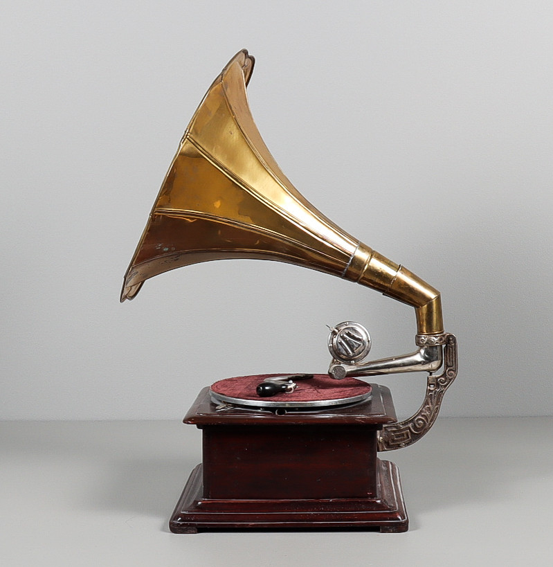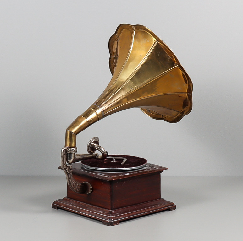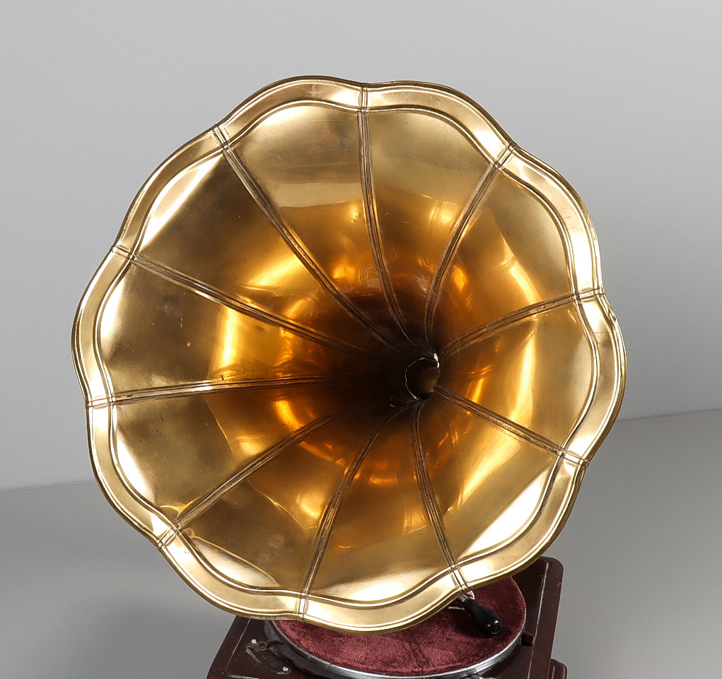 3201283. TRAGTGRAMMOFON med messingtragt.