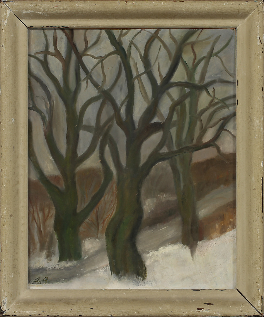 320140. ANNA BERG. "Vinter", olie på Panel, monogram signeret.
