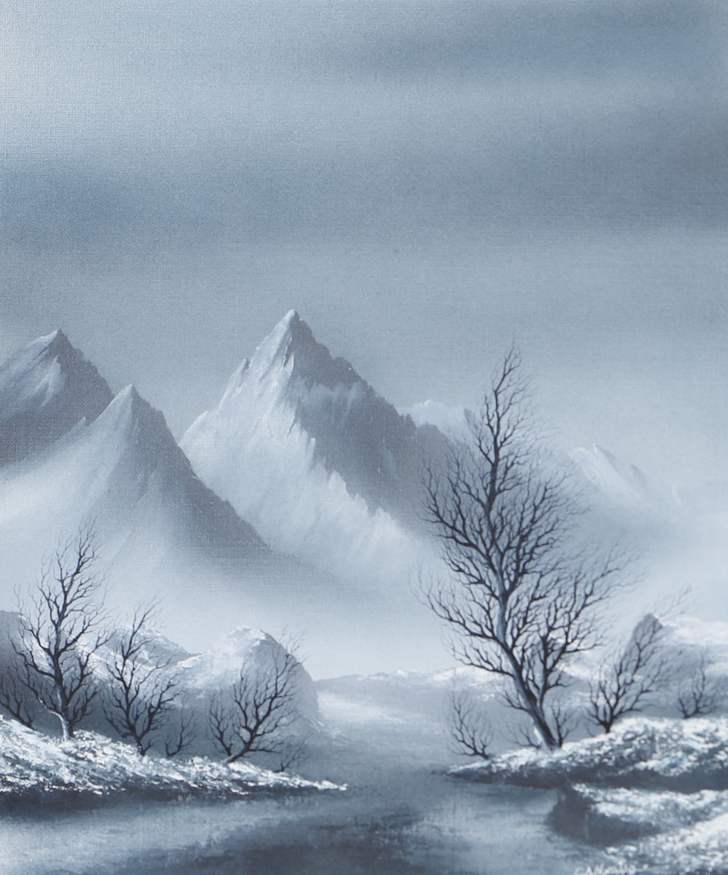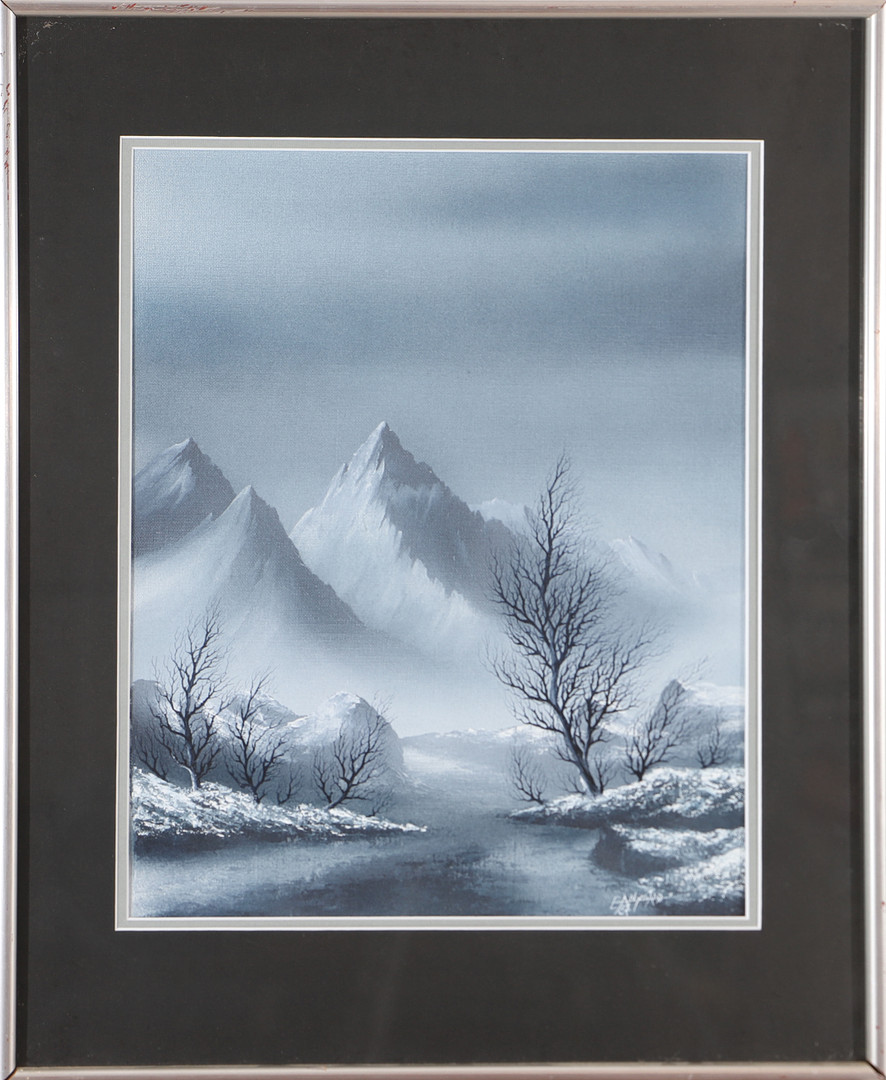 3202790. OIDENTIFIERAD KONSTNÄR. Bjerglandskab, tryk, signeret EA Nygård.