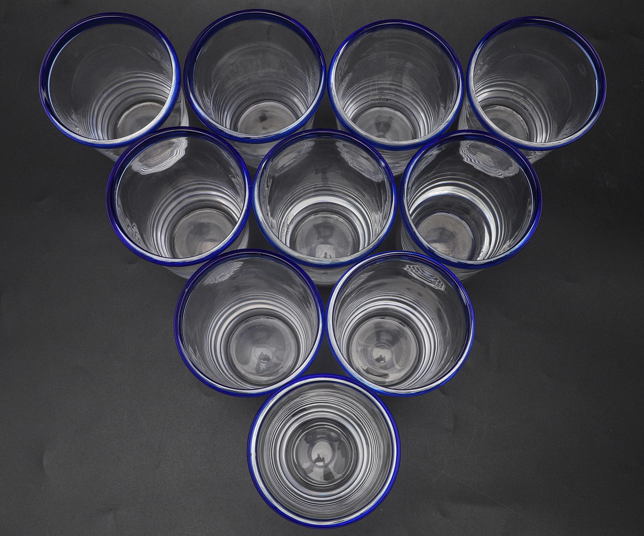Mælkeglas, 10 stk, „Blue edge“, Bergdalahyttan.