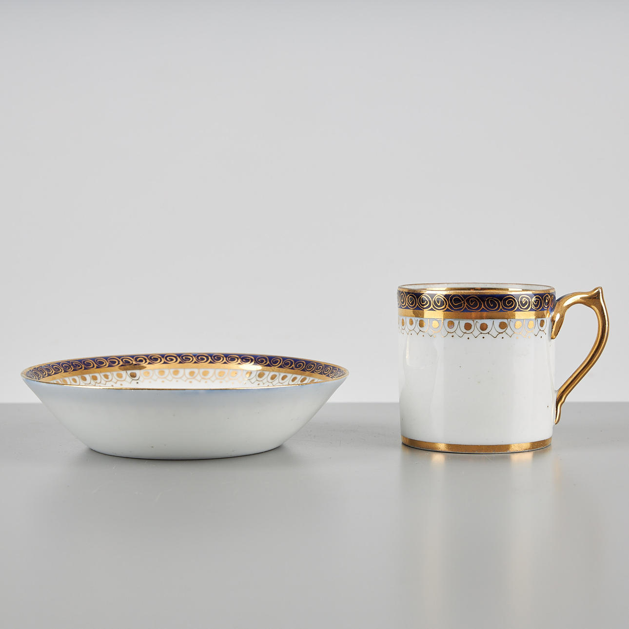 6 porcelænskopper med underkopper, Kuznetsov, Rusland.