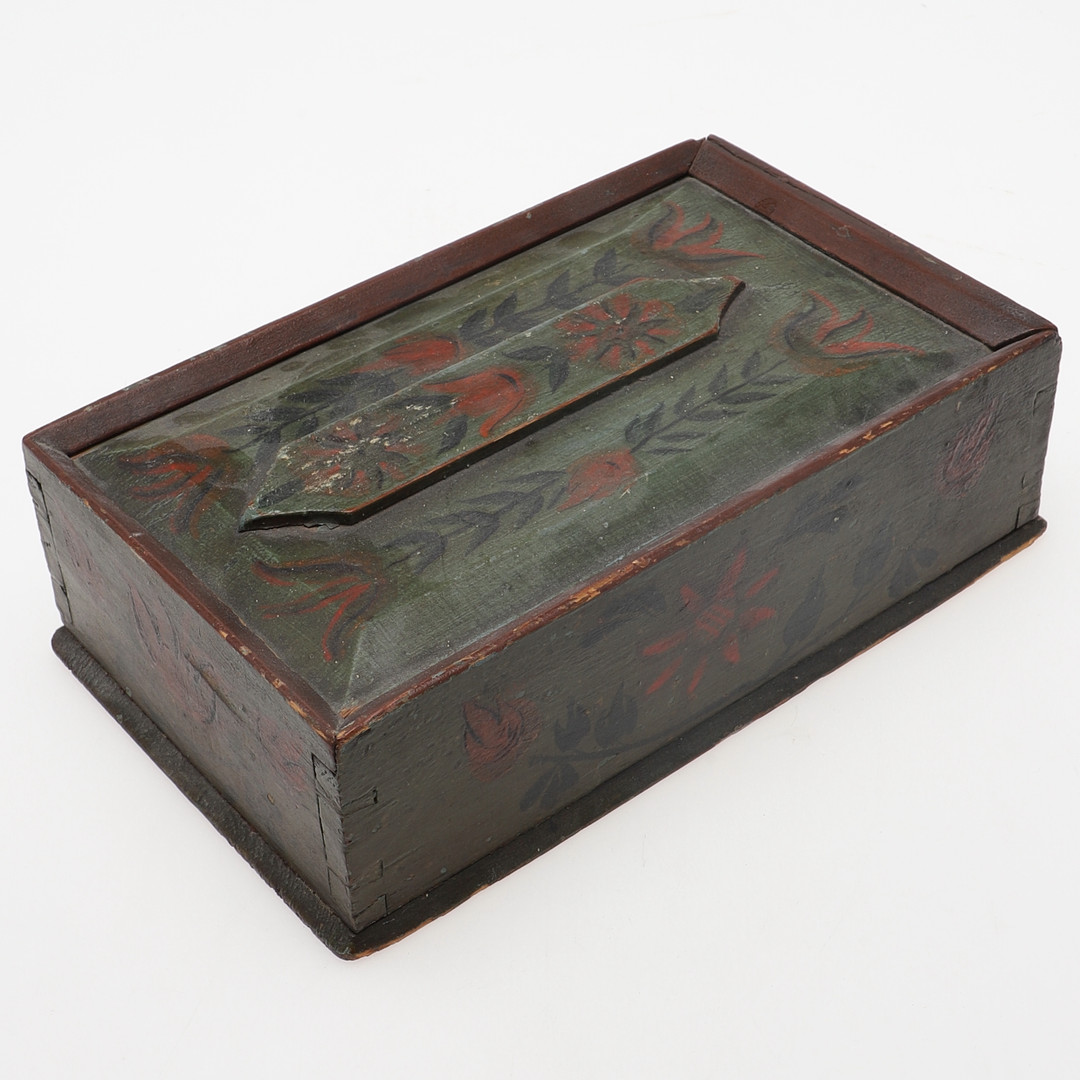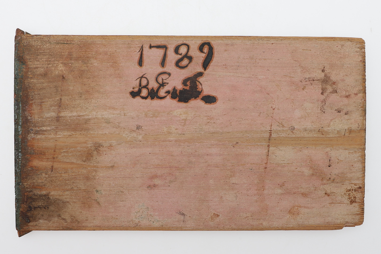 3207248. Timekort, almoge, malet dekor, glidelås, 1800-tal.