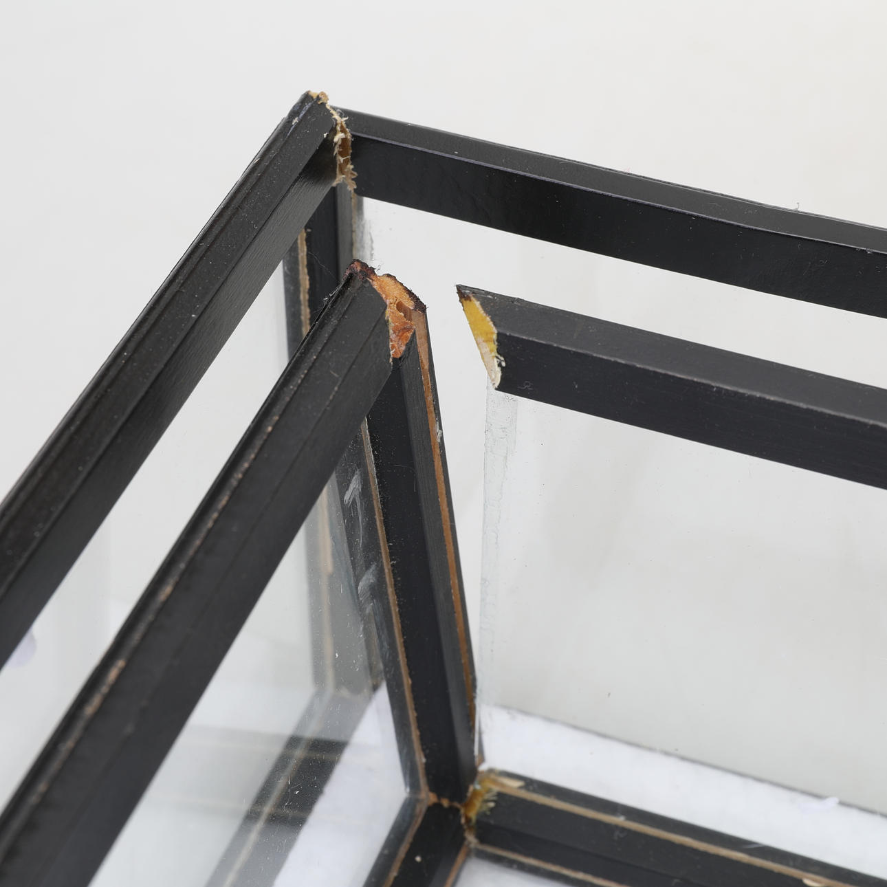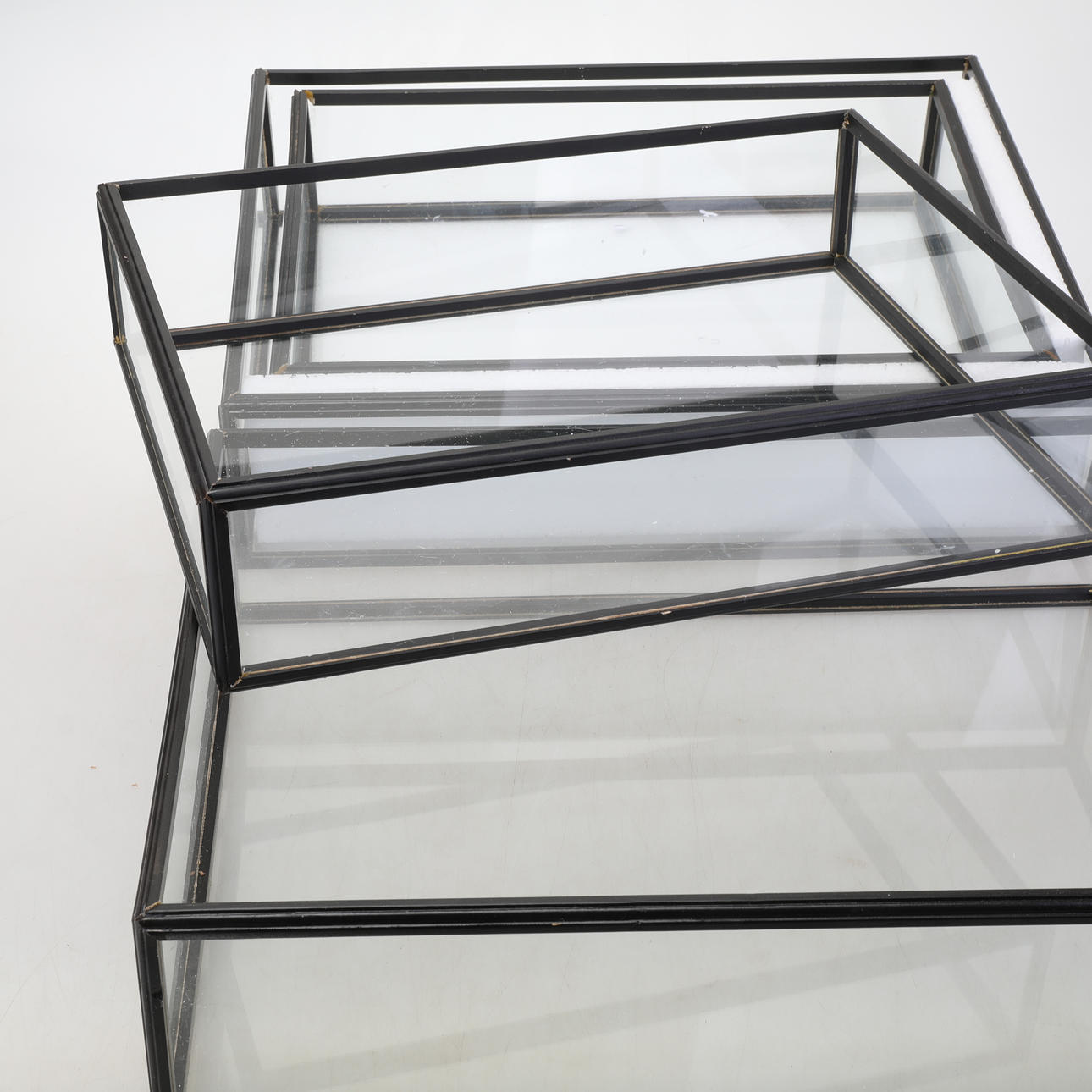 3208317. DISPLAYBOKSE, 4 stk moderne, glas & træ.