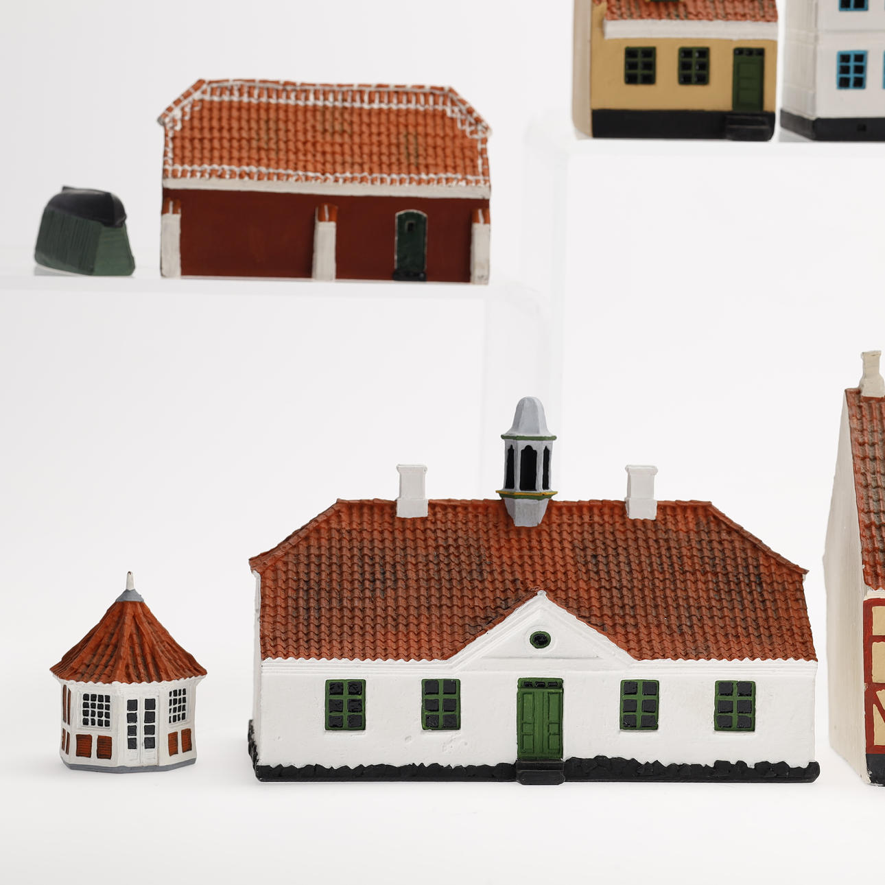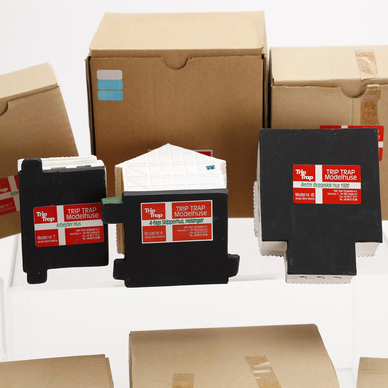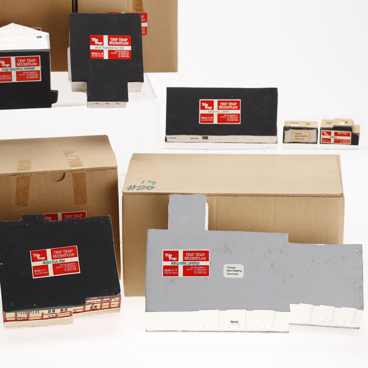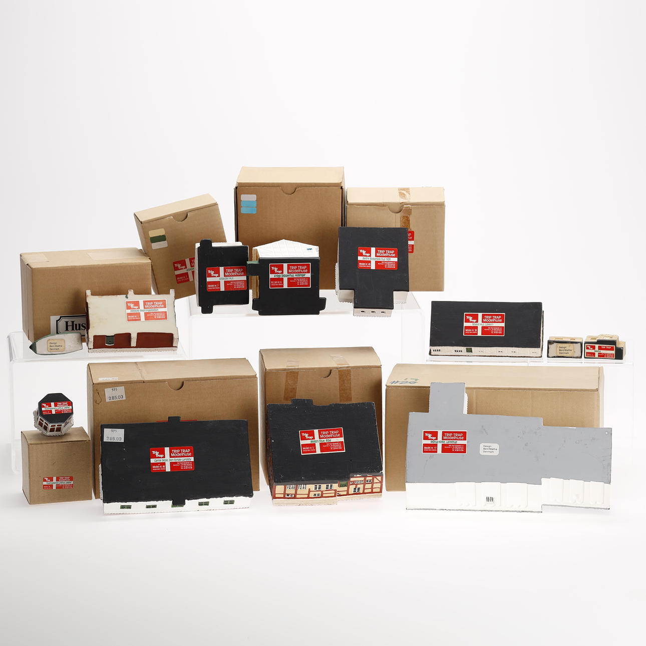 En samling Trip Trap miniature huse, design af Bent Maltha.
