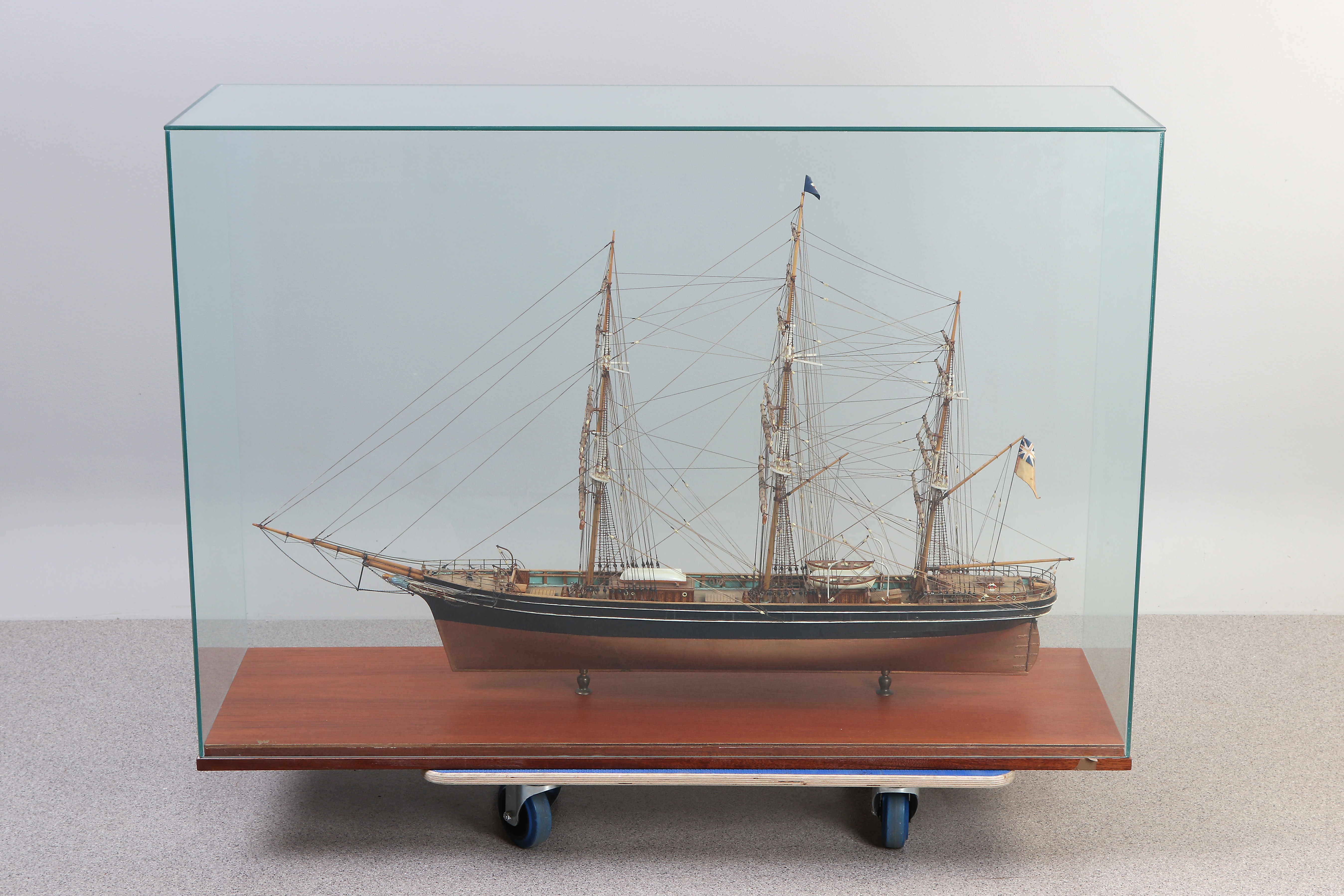3214827. SEJLBÅDSMODEL I VITRINESKAB. „Cutty Sark“.