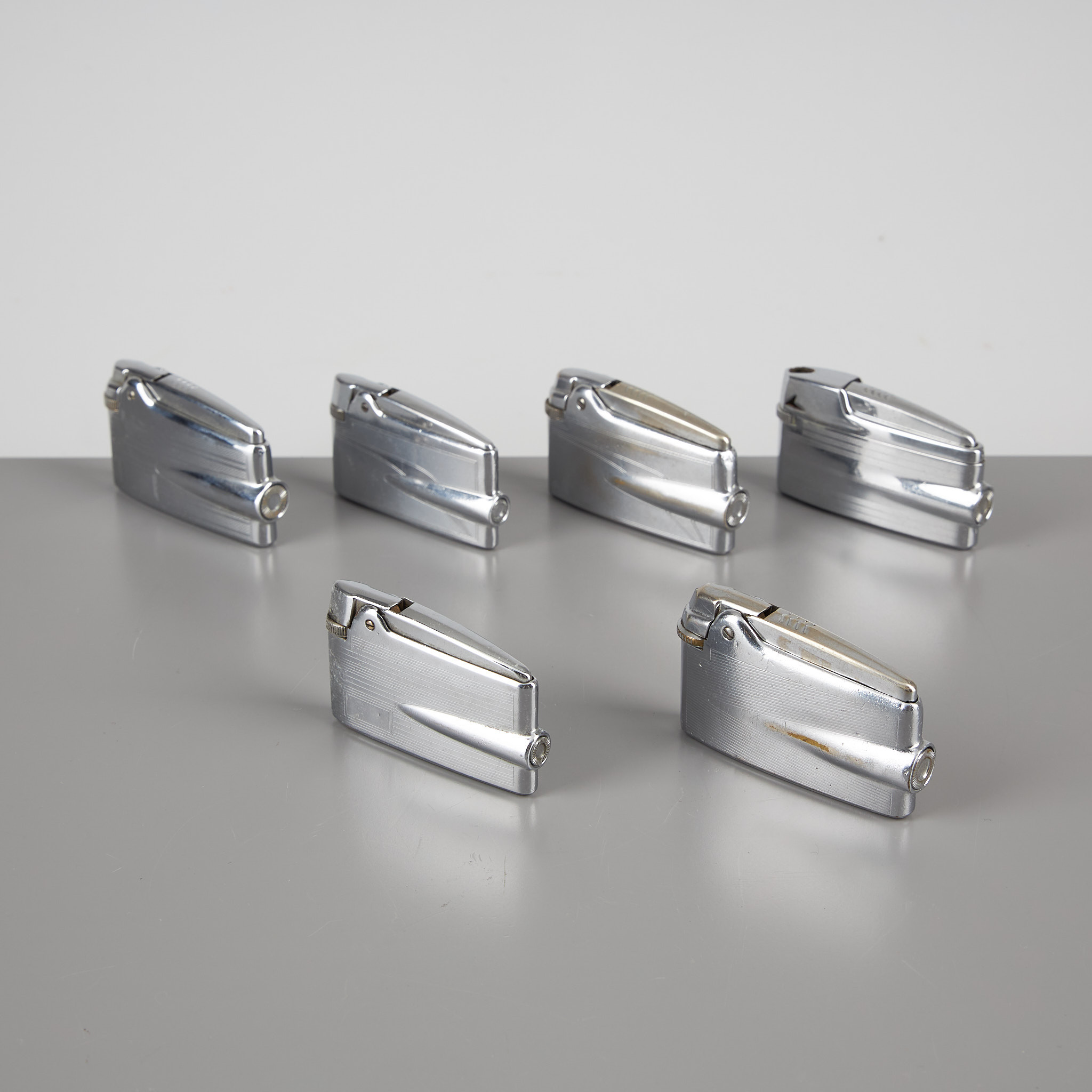 3215012. Ronson lightere, 6 stk., hvidmetal.