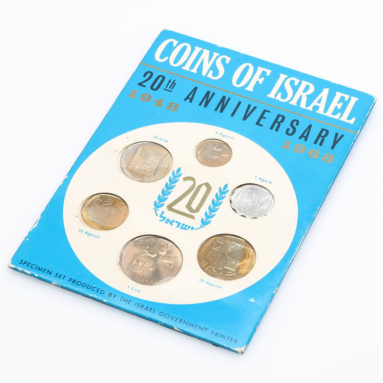 1 samling af 6 blandede metalmønter, „Mønter i Israel 20-års jubilæum 1948-1968, Israels regeringsmønter og medaljeselskab.