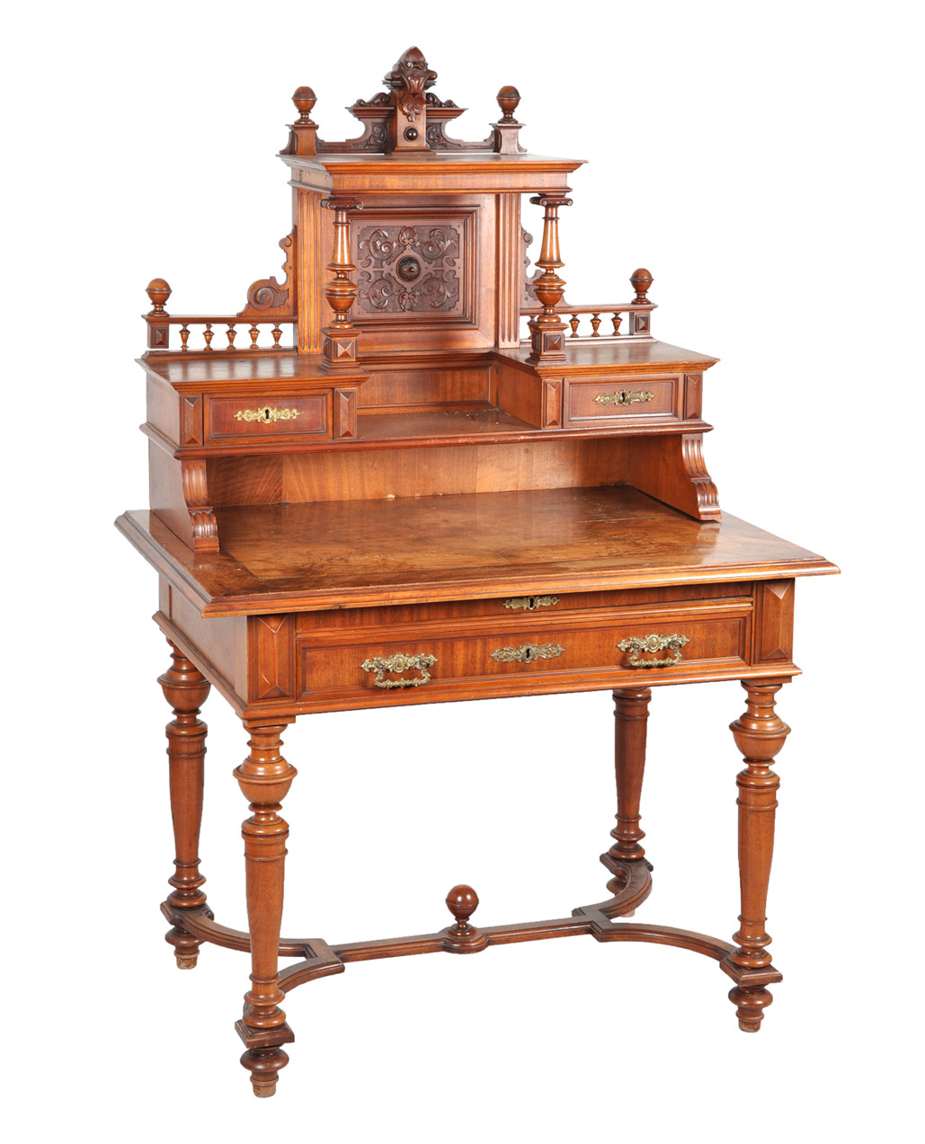 322295. AUFSATZSCHREIBTISCH. Valnød, rodtræfiner, ca. 1890.