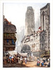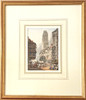 En engelsk skole, forgyldt indrammet akvarel fra det 19. århundrede af et travlt fransk marked ca. 1840, rammestørrelse 36 x 42 cm.