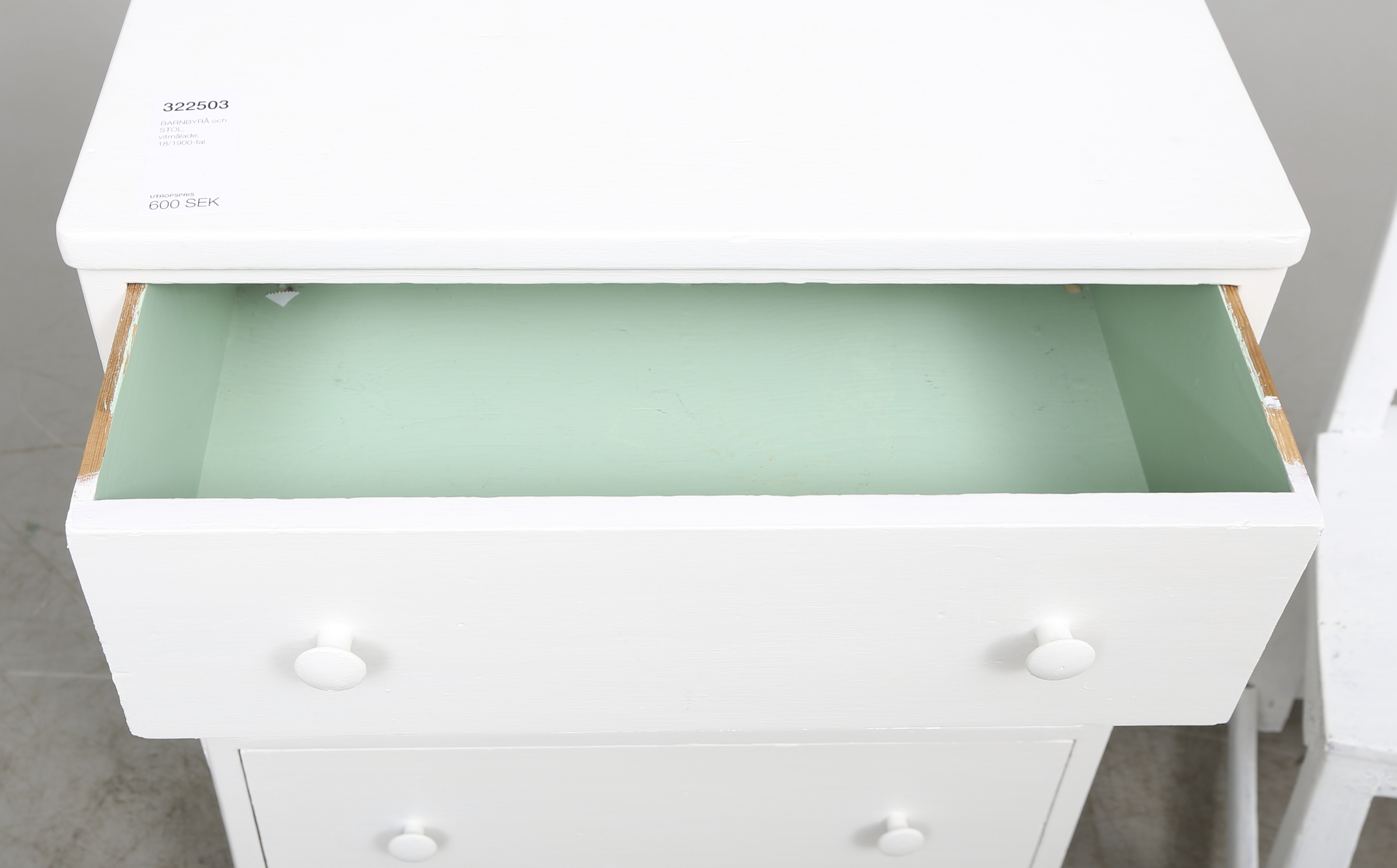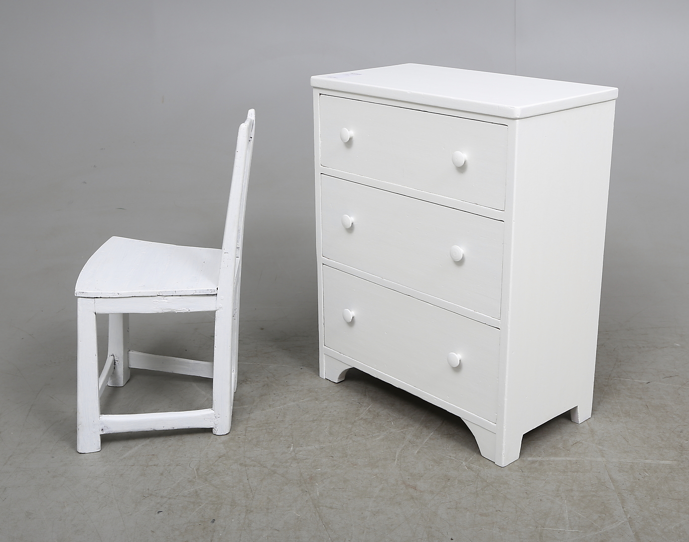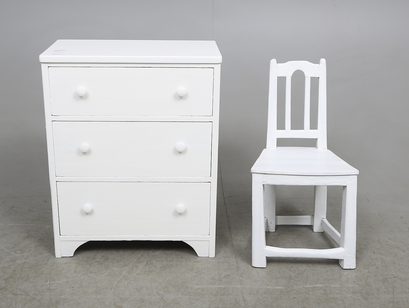 322503. BARNBYRÅ og STOL, hvidmalet, 18/1900 tallet.