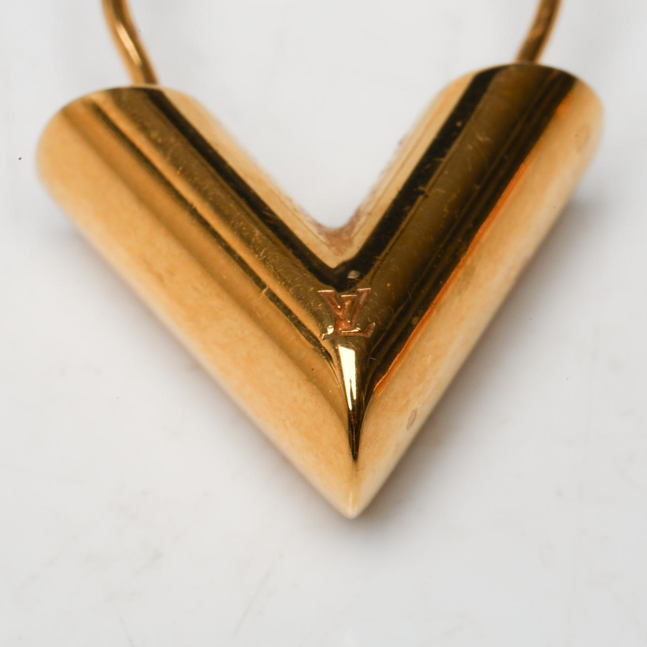 Et par V-formede øreringe med indgraveret monogram LV.