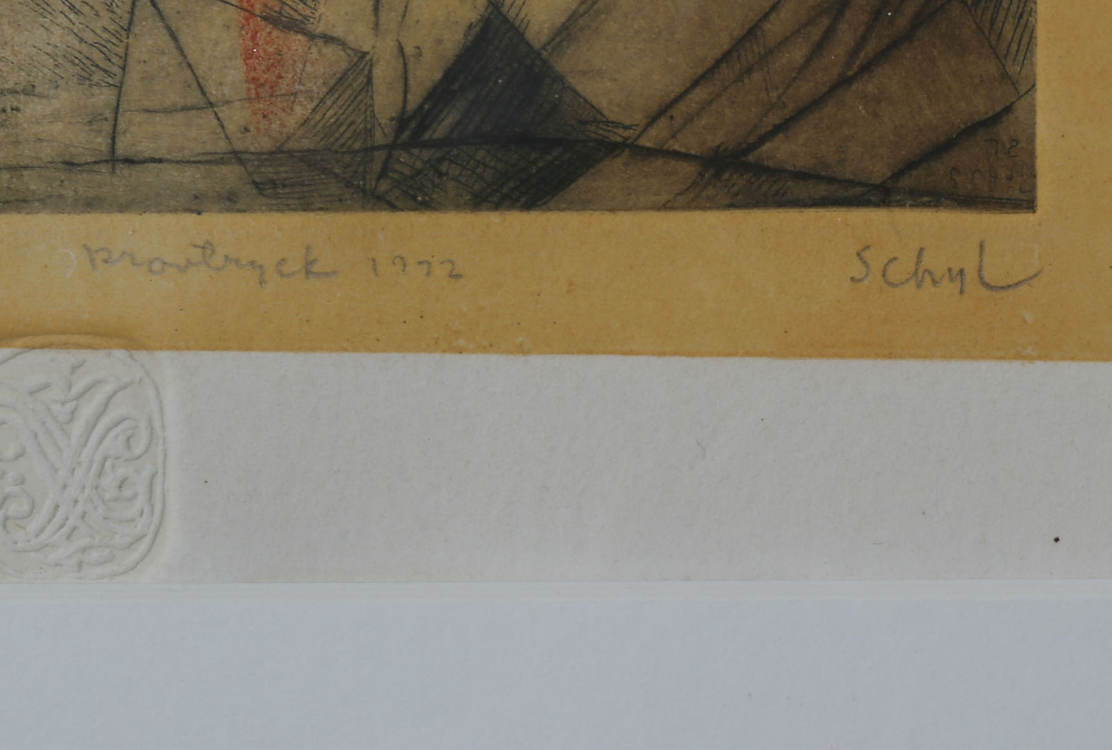 322987. JULES SCHYL. Radering, proof, signeret, dateret 1972.
