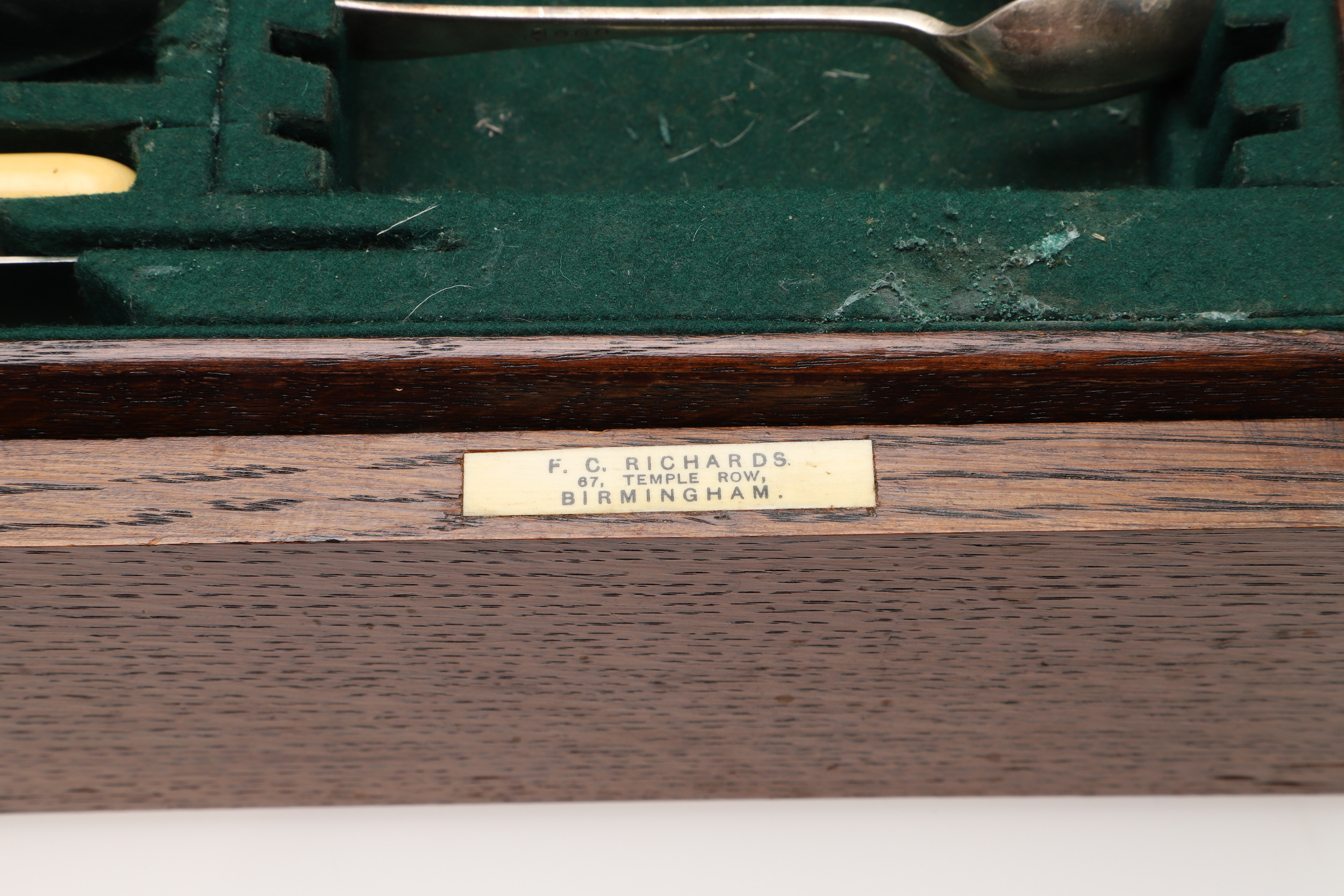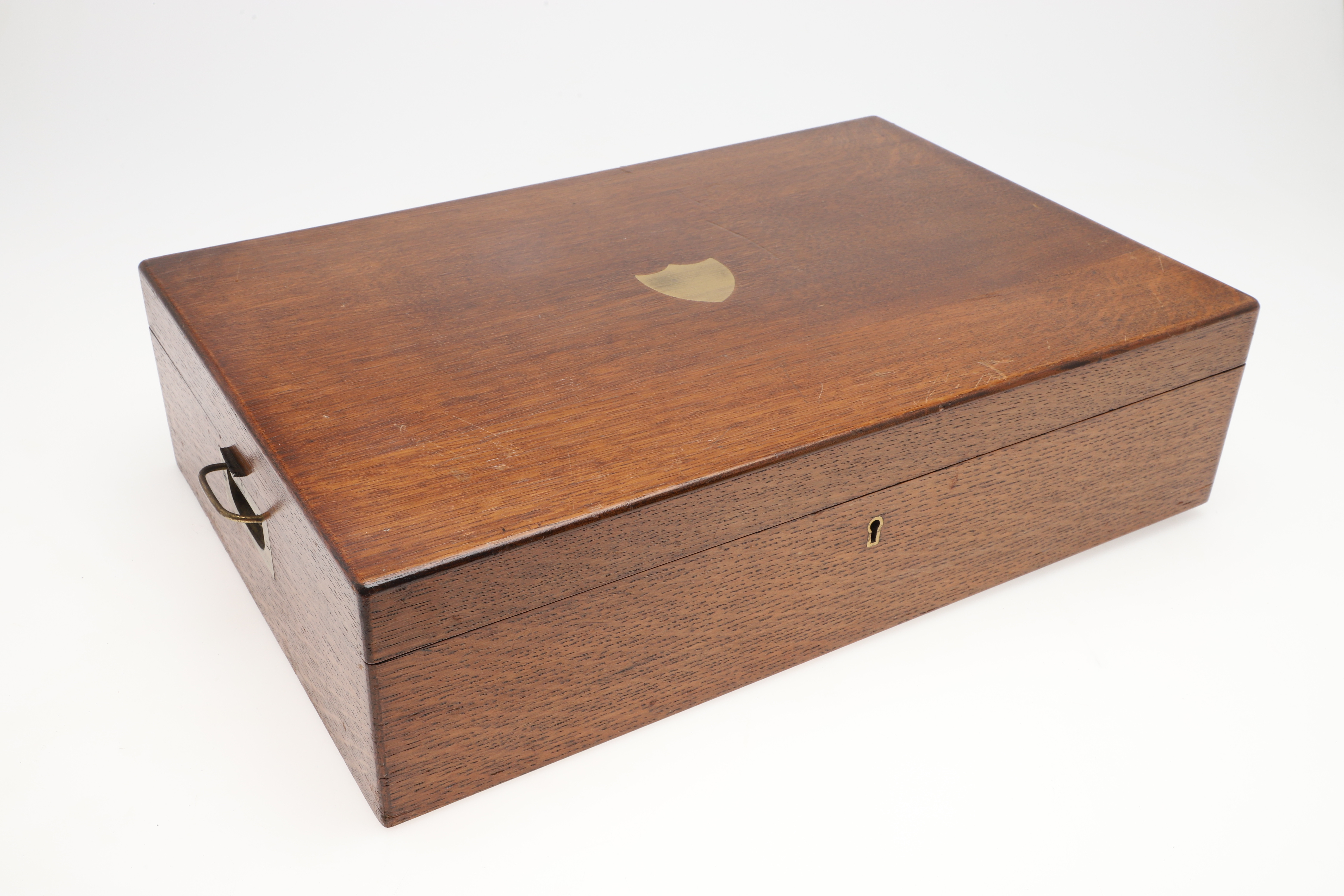3232018. EN BORDKANTINE AF BESTIK MED ROTTEHALEMØNSTER I EGETRÆSKASSE.