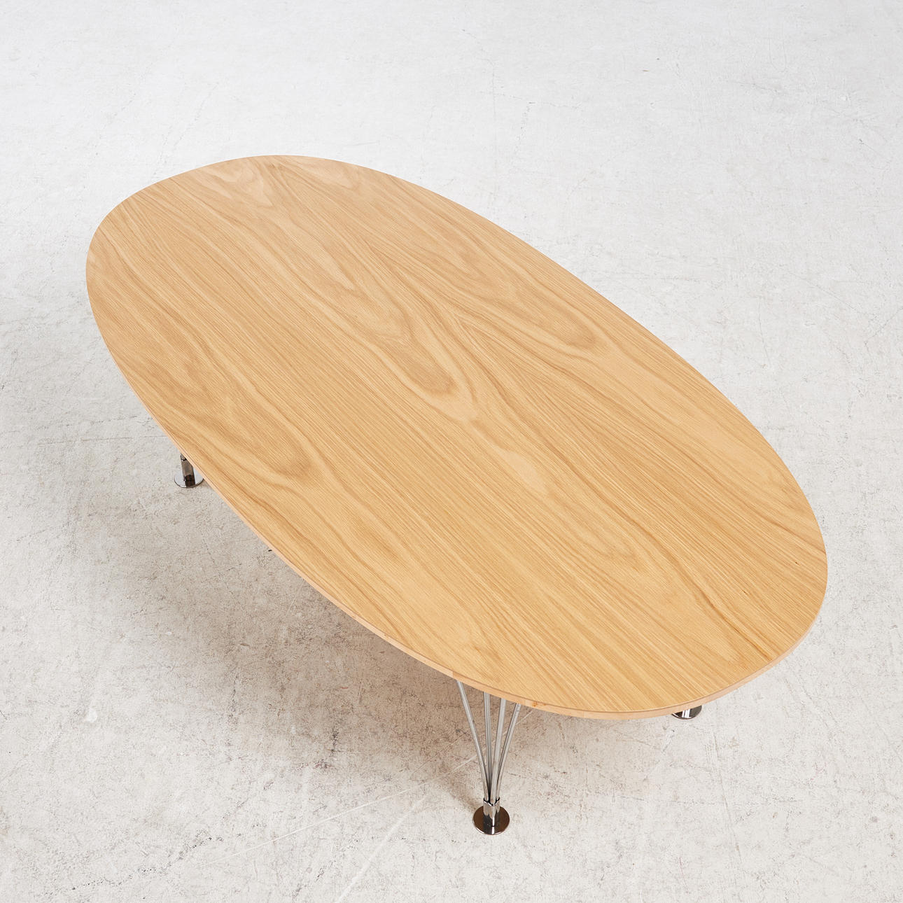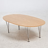 3233952. BRUNO MATHSSON/PIET HEIN, sofabord, 'Superellips', Fritz Hansen, Danmark, egetræ, forkromede spændeben, etikettemærke.