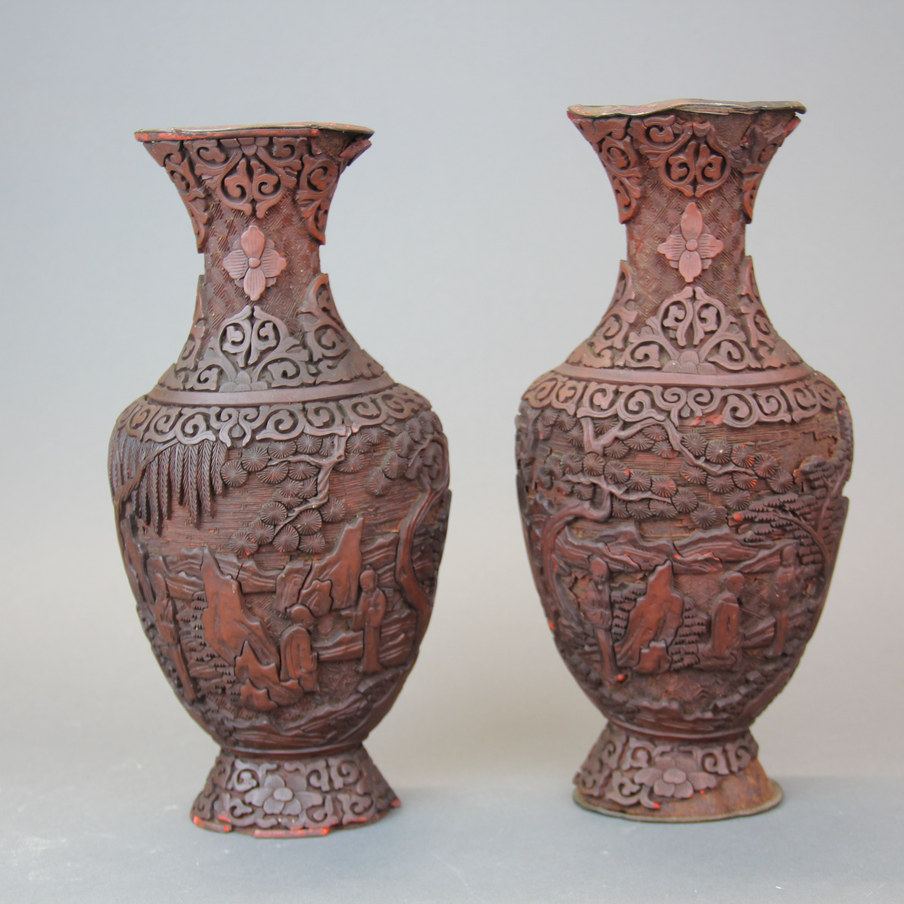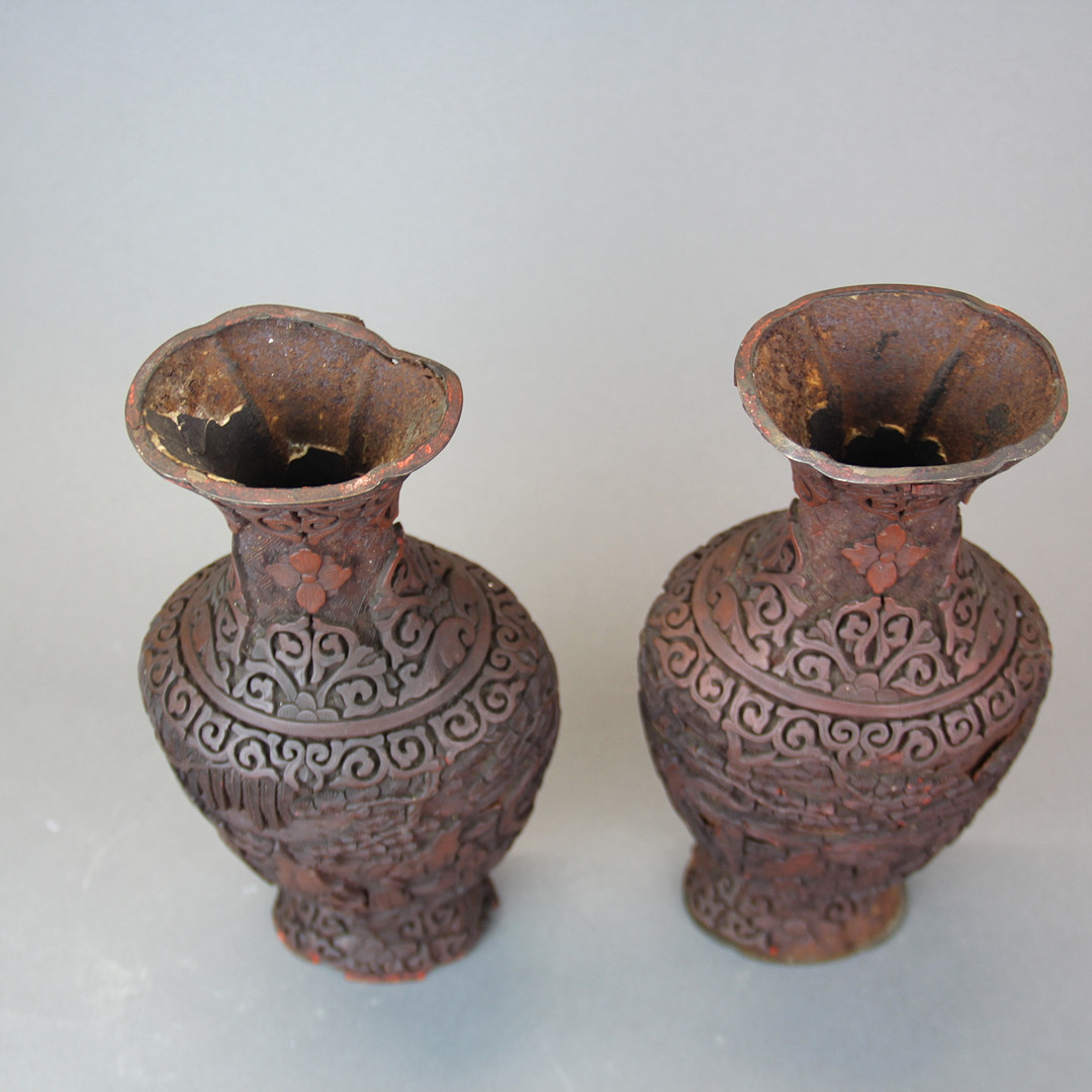 3236127. TIDLIGE KINESISKE CINNABARVASER.