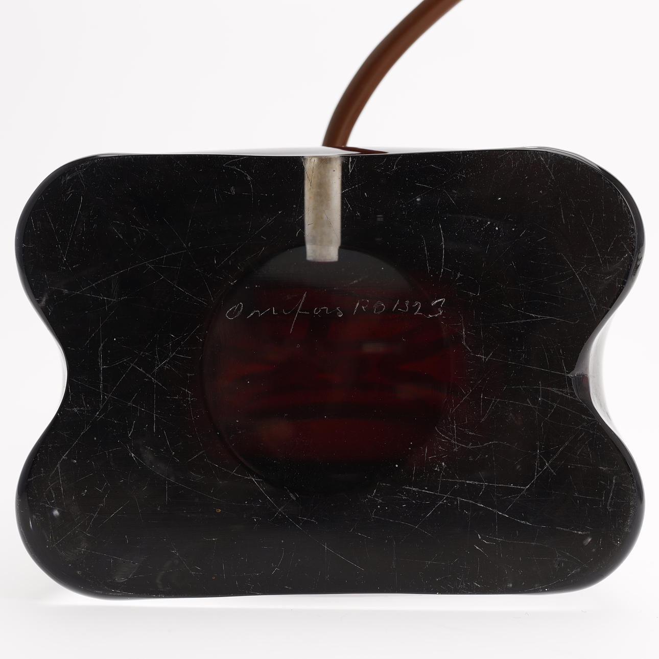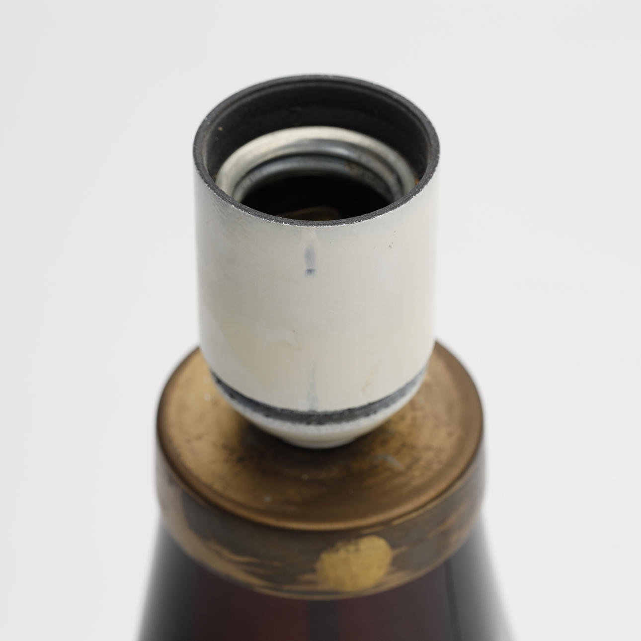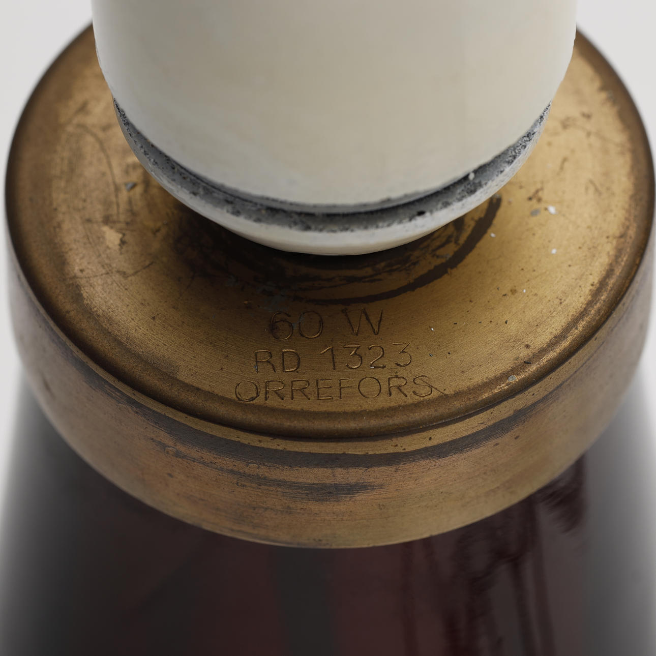 Alders- og brugsslitage. Overfladeridser. Virkede på katalogiseringstidspunktet. Løst messing ved toppen af lampen. Ingen garanti for funktionaliteten.