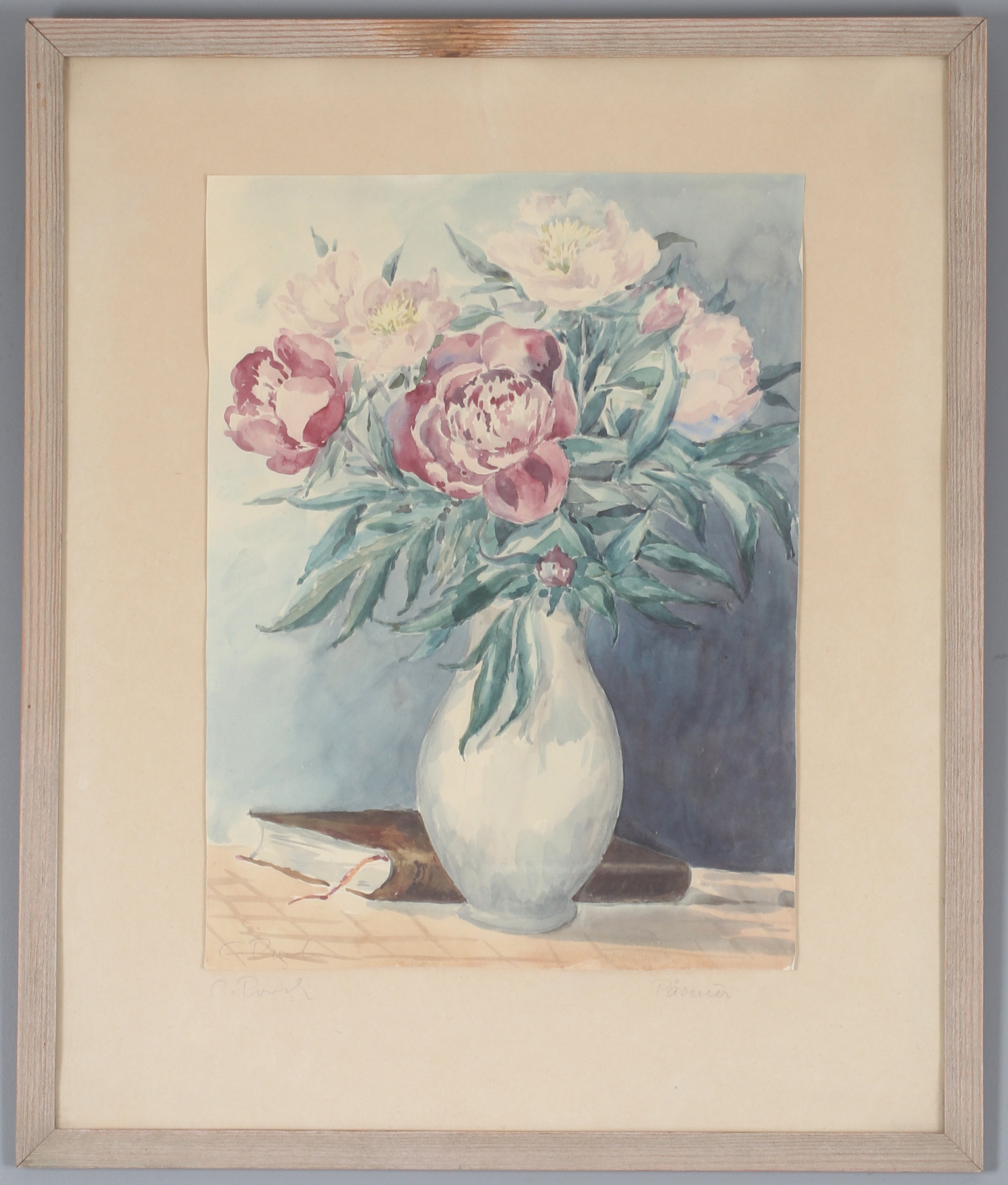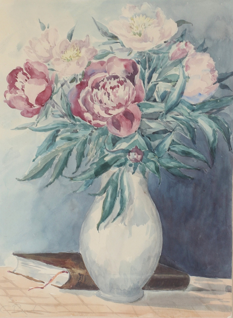 3237845. OIDENTIFIERAD KONSTNÄR. Blomsterstilleben, akvarel, signeret.