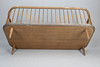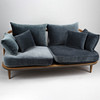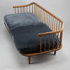 Massiv eg samt egetræsfiner. Løse fjer i blåt fløjlstekstil.