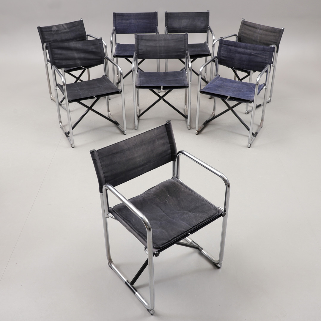 3240284. 8 direktørstole, krom/lærred, 1900/2000'erne.