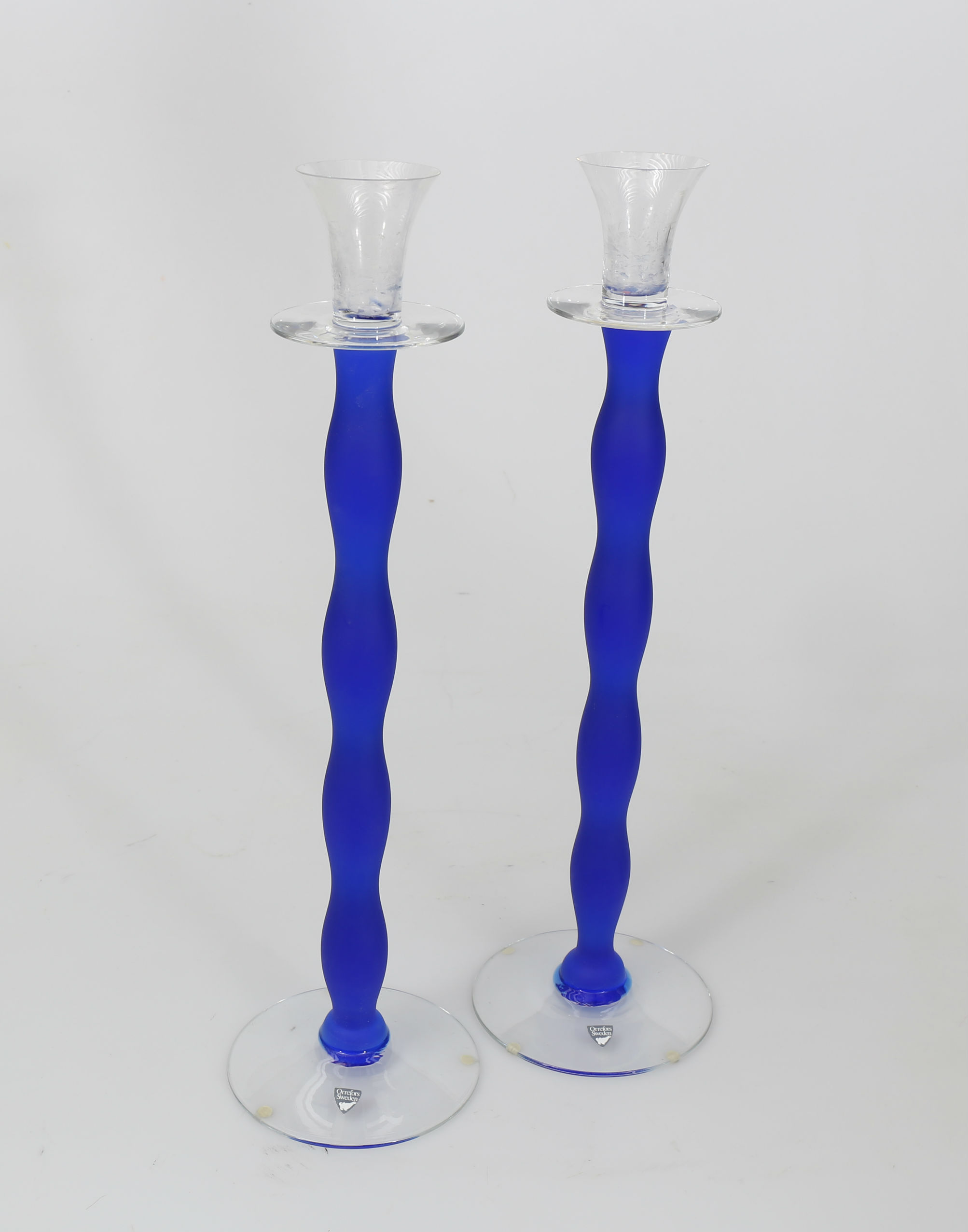 324045. LYS, glas, blå, "Celeste", 2 stk., Anne Nilsson, Orrefors.
