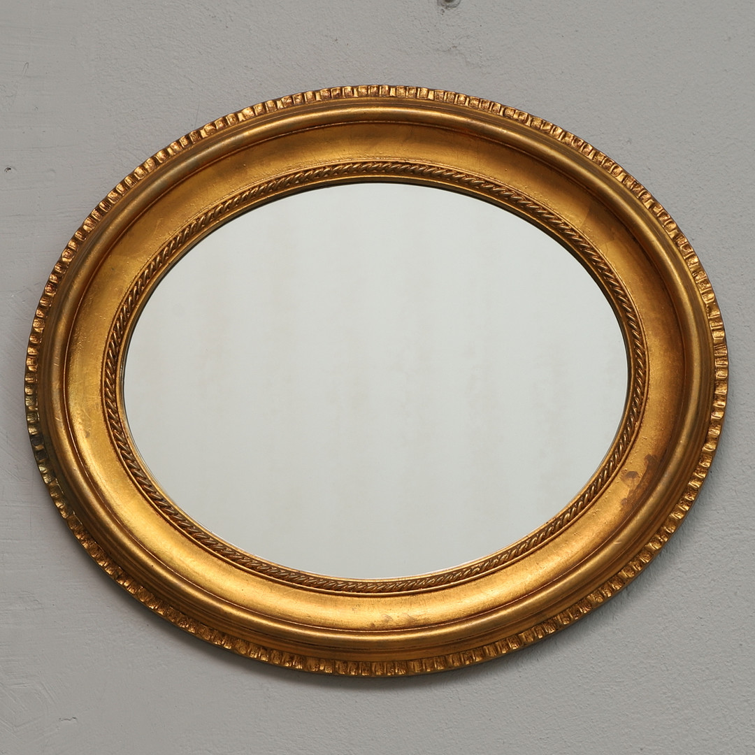 3243674. Spejl, oval, forgyldt ramme, 20. århundrede.