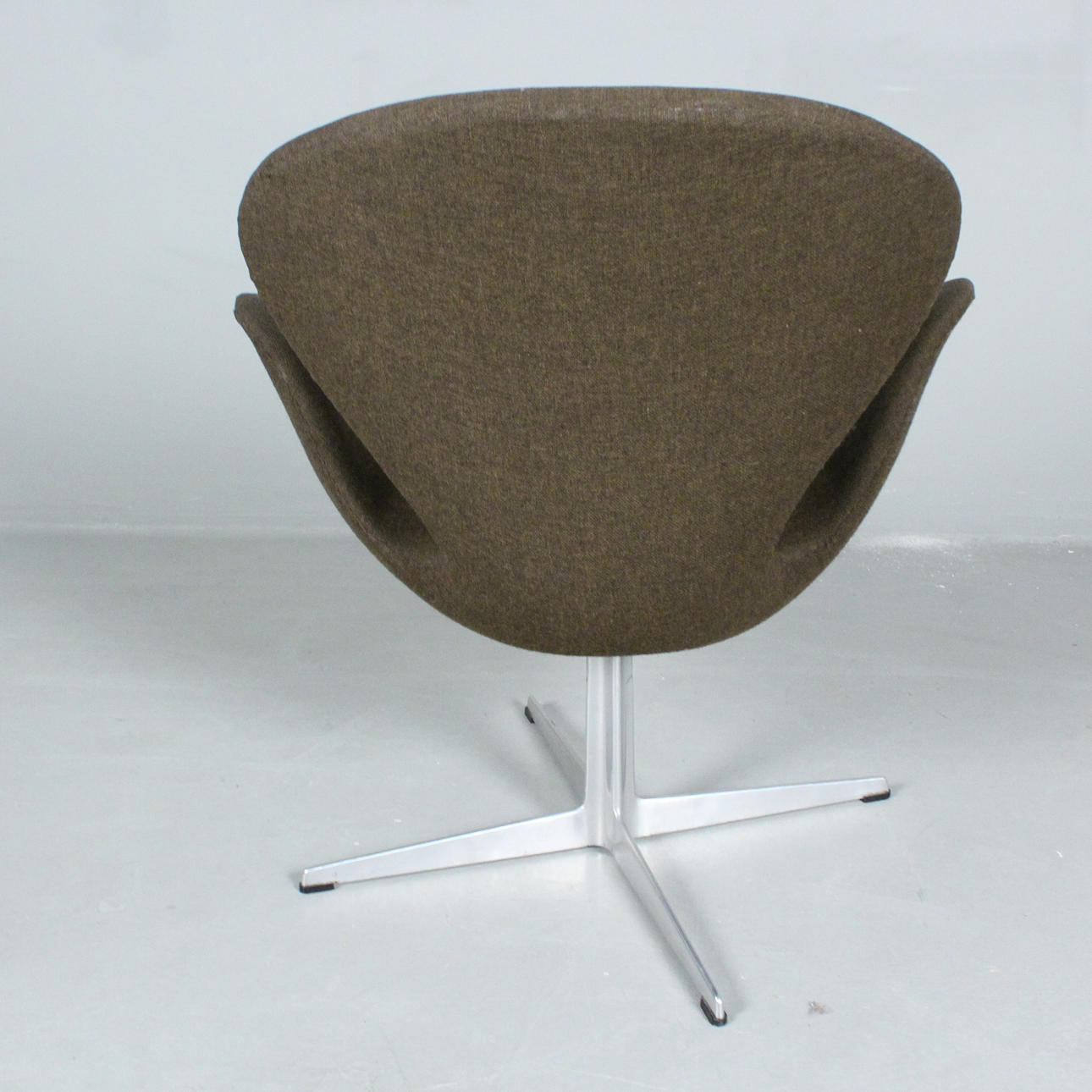 Arne Jacobsen for Fritz Hansen, model „Svanestol“, Danmark, stofbetræk, tidlig version med producentens mærke, profileret fod.