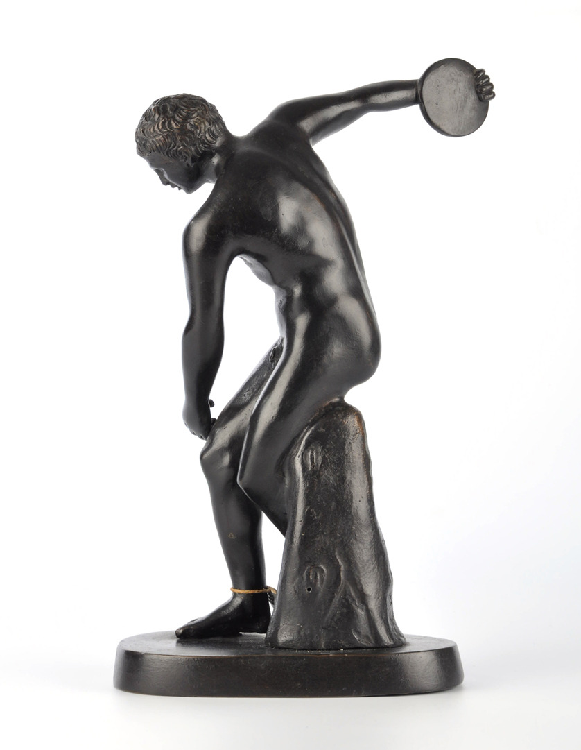 325056. DISKUSWERFER VON MYRON. Lille bronze efter antik model, poleret bronze.