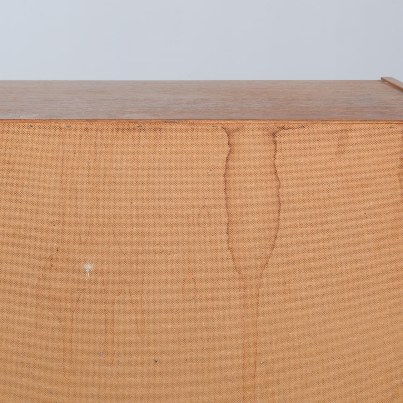 Skuffer og døre med baghylder. Længde 170 cm. Dybde 42 cm. Højde 90 cm.
