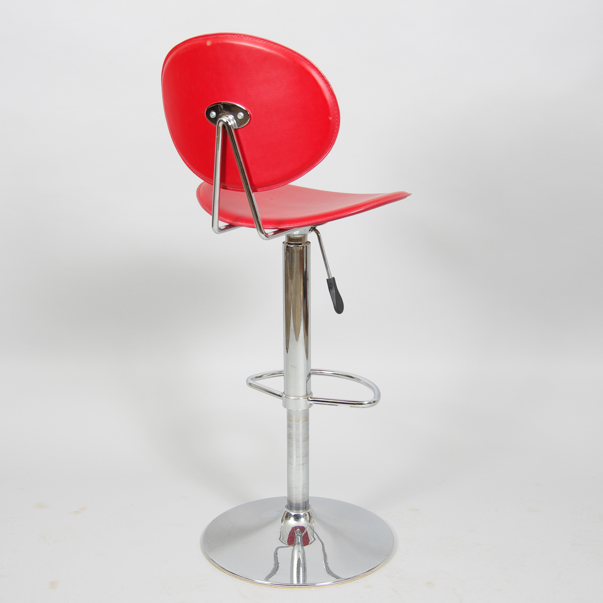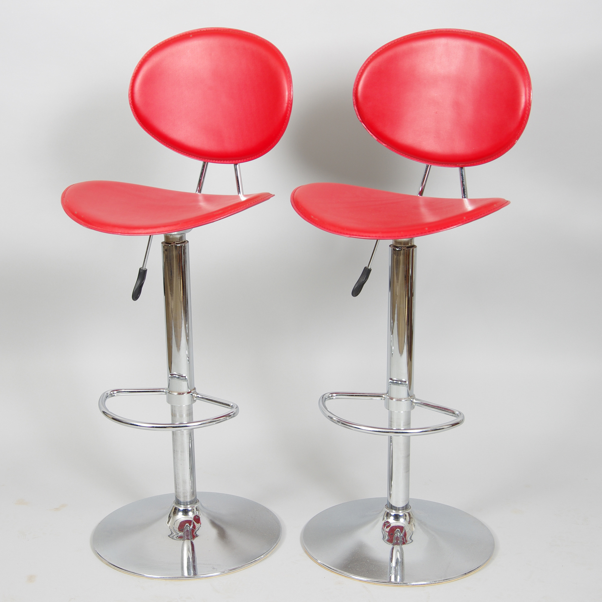 325309. BARSTOLAR, 1 par, rødt kunstlæder med krom interiør.