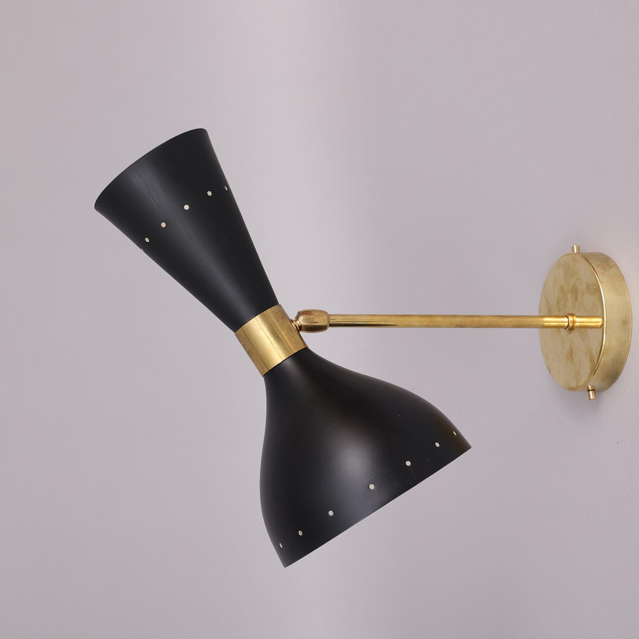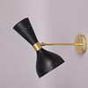 Ramme i patineret messing, malede metalskærme, dobbelte lyskilder, E14