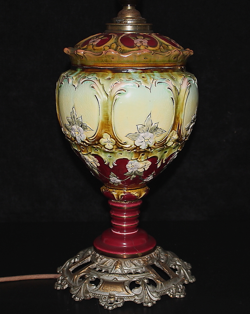 325760. BORDLAMPE, porcelæn, majolika.