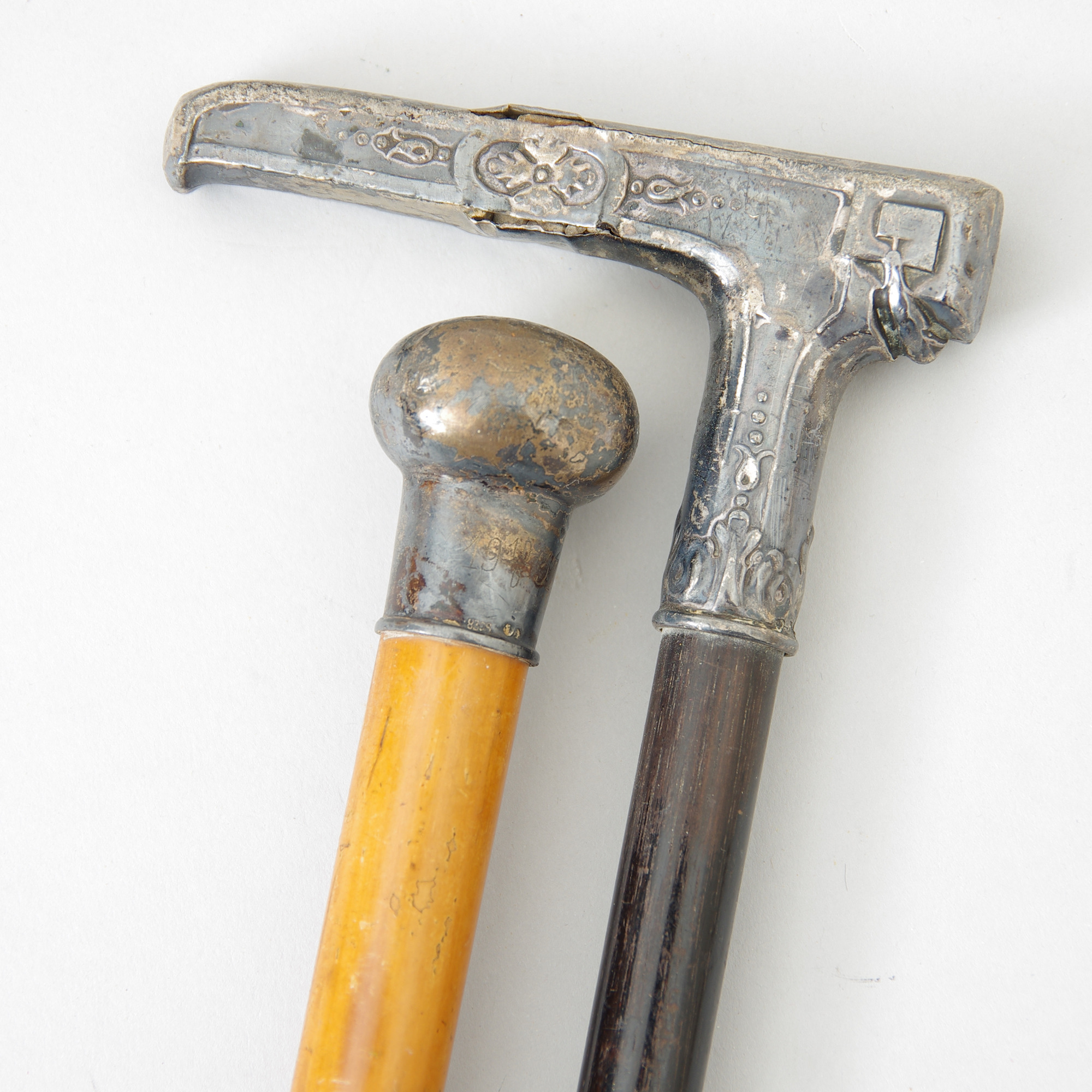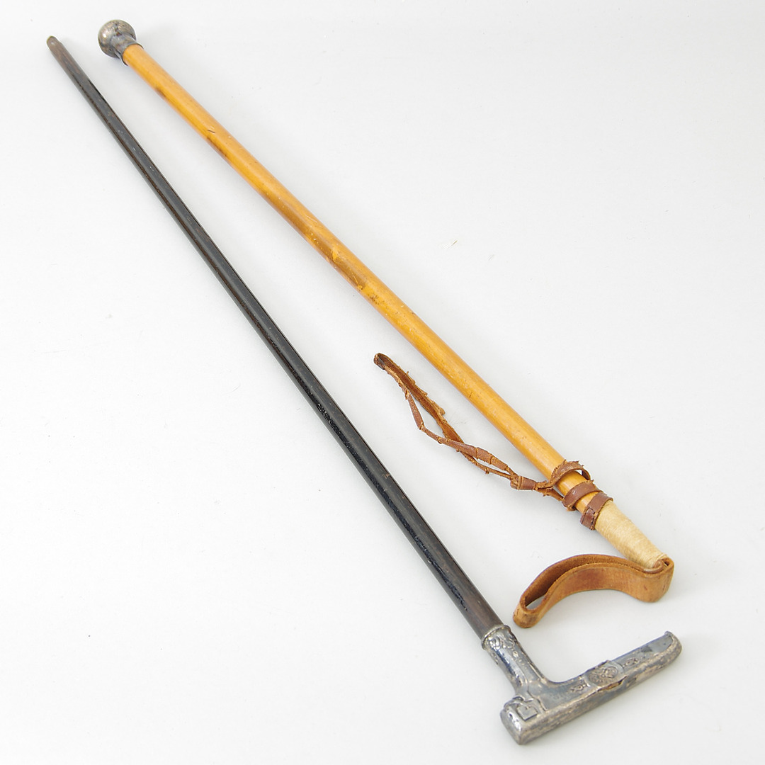 325900. STOCK OG RIDESTOFT med sølvhåndtag.