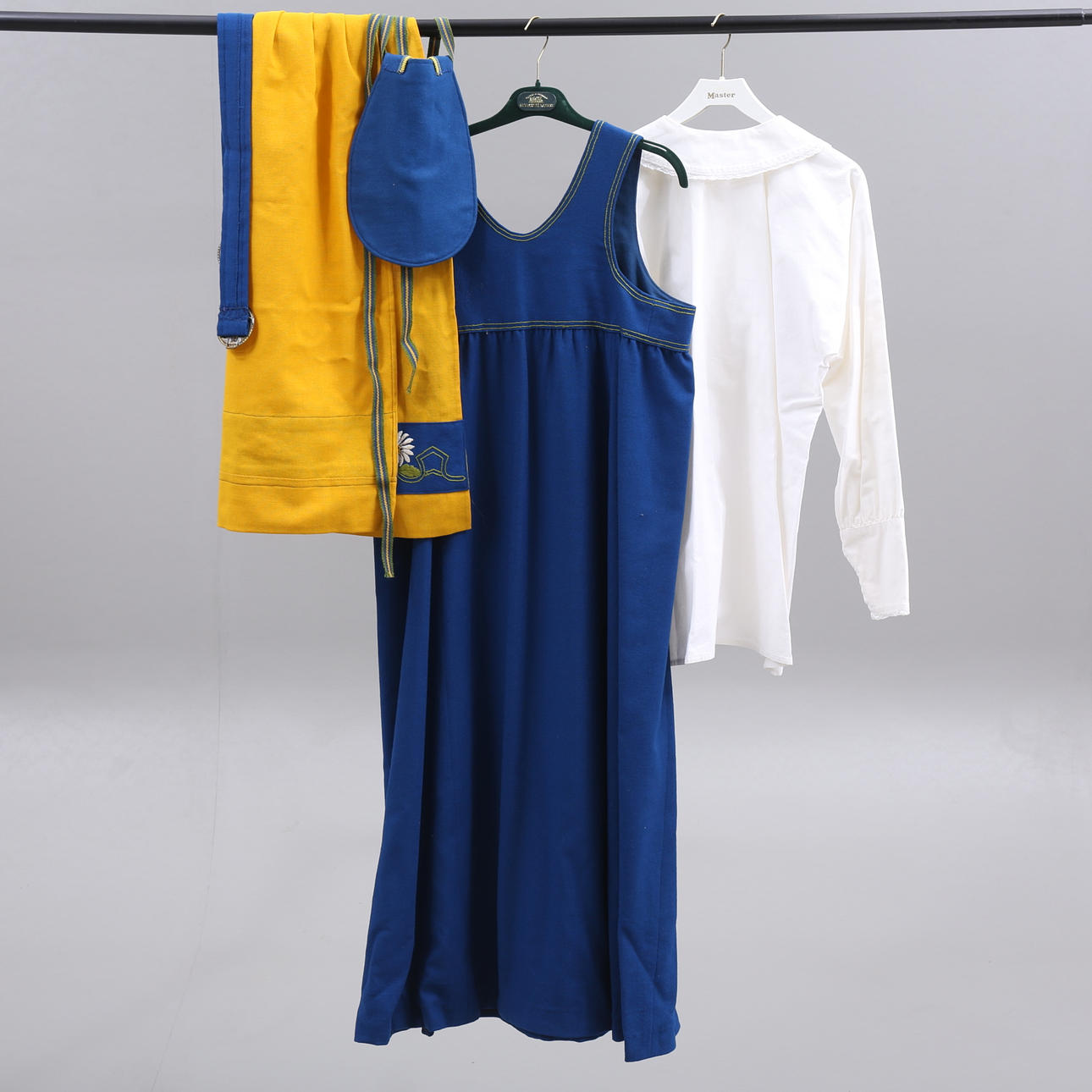 Svensk folkedragt, 6 stykker, herunder sølvbroche.